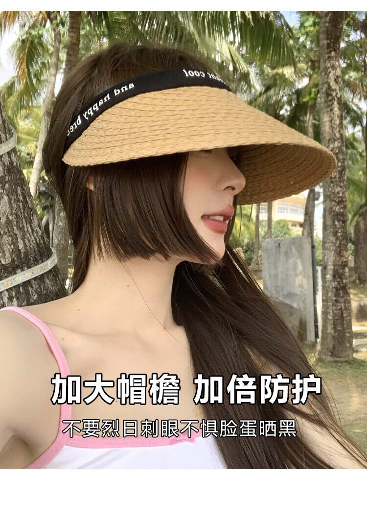 ラフィア空のシルクハット女性の夏の新しい日焼け止め帽子抗紫外線空のトップ麦わら帽子カバーフェイスサイクリングサンハット サマー 夏物 15dd83635589311