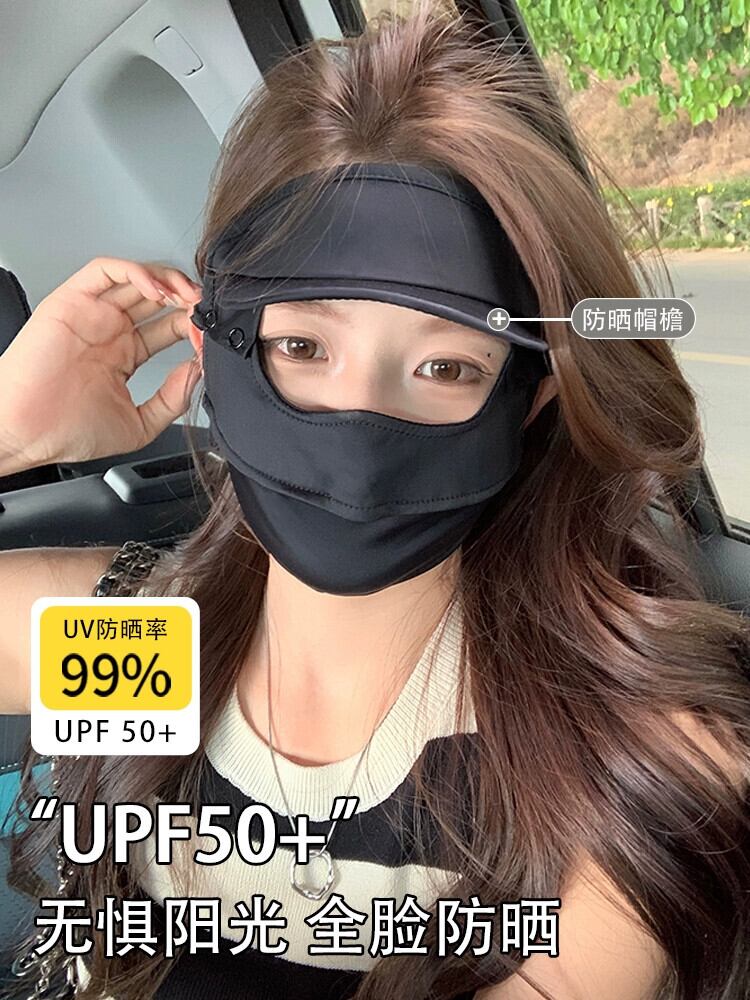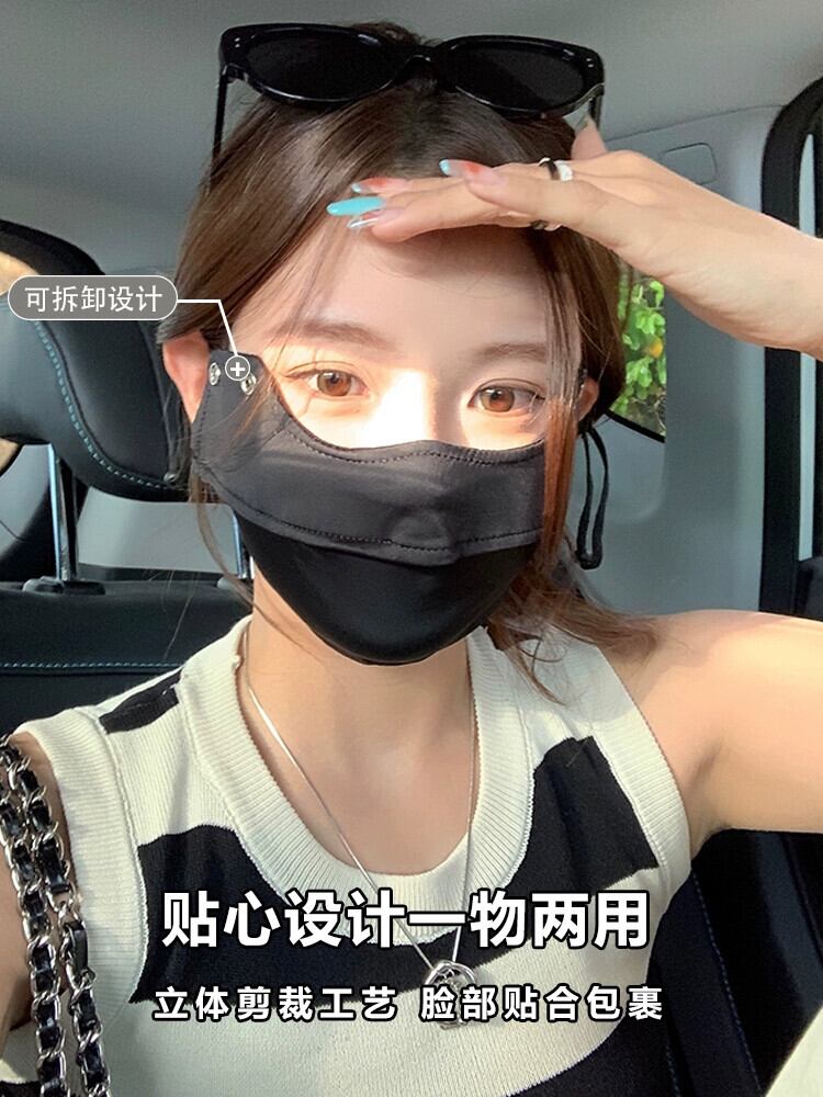 日焼け止めマスク レディース 夏 紫外線対策 運転 アイスシルク サンシェード キニカバー 顔全体 取り外し可能なつばマスク1枚付き サマー 夏物 15dd66060299539