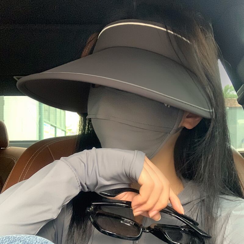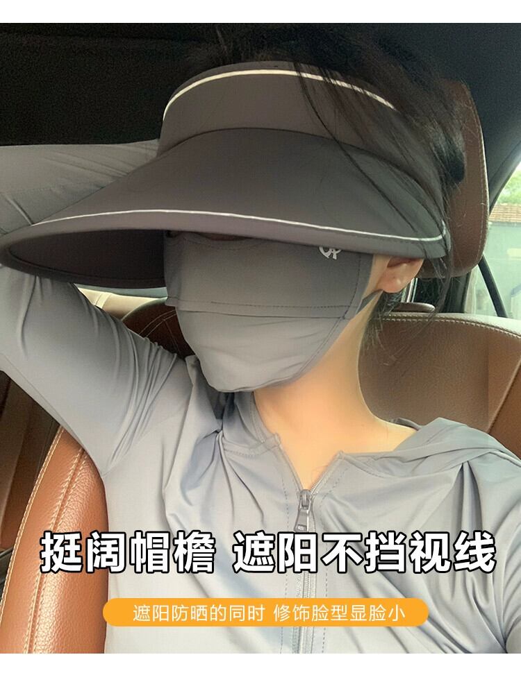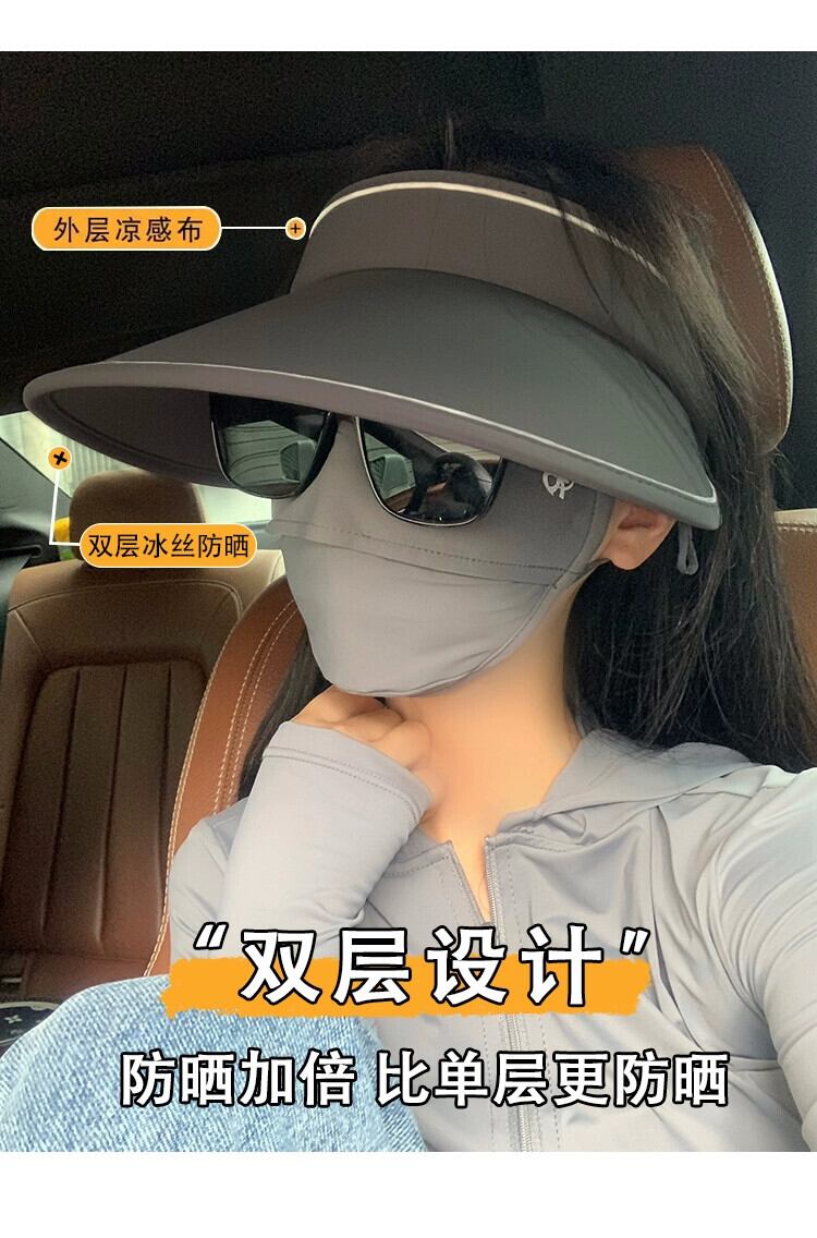 アイスシルク日焼け止め帽子女性の夏 2023 新しい大きなひさし空のトップサンシェード抗紫外線顔グレー太陽の帽子 サマー 夏物 15dd39464840276