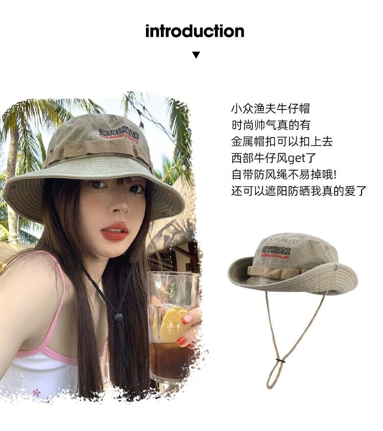 ese 薄肉巾着ビッグ軒漁師帽子女性の夏通気性日焼け止め屋外登山キャンプ西部カウボーイハット サマー 夏物 15dd86647144087
