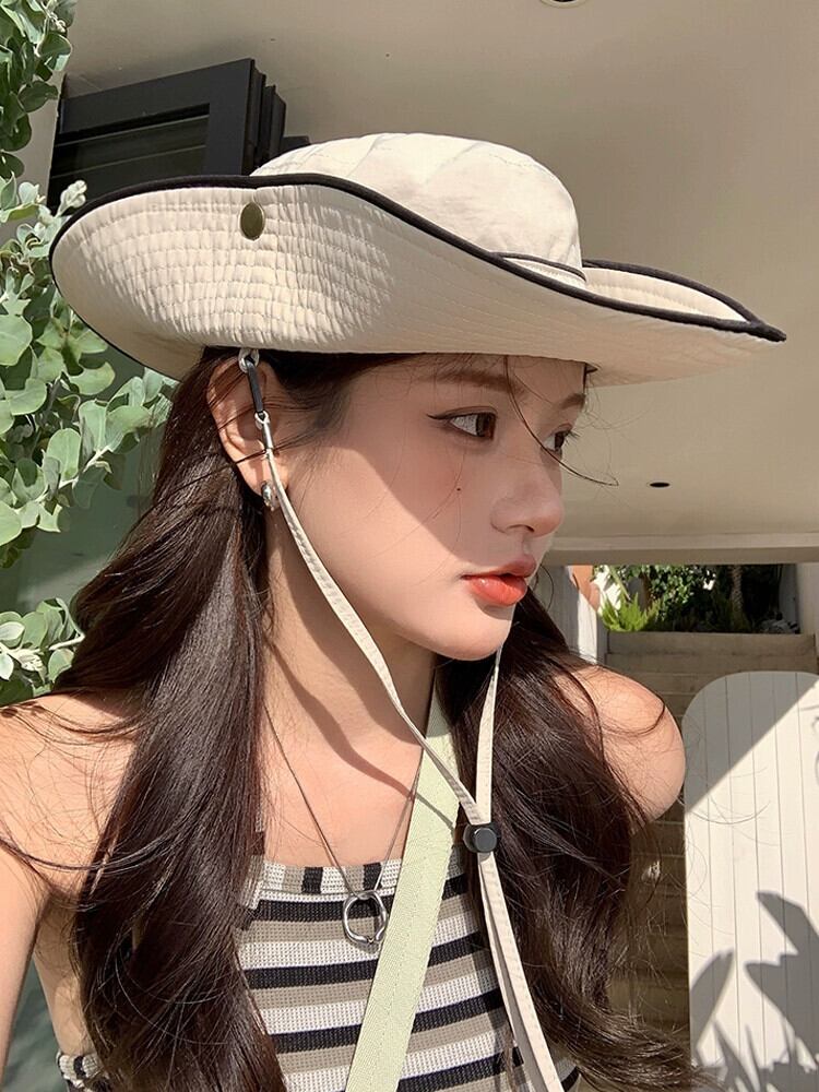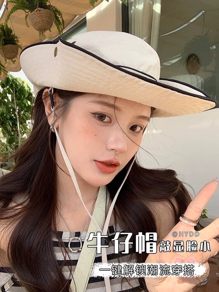 ese 薄いセクション大きな軒漁師の帽子女性の夏通気性日焼け止め屋外釣り登山旅行西部カウボーイハット サマー 夏物 15dd74069165166