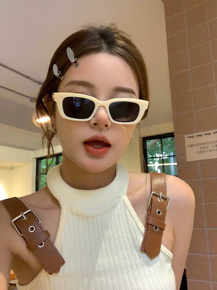 2023 新しいヨーロッパとアメリカのレトロな小さなフレームキャットアイサングラス女性インスクエア丸顔ベージュサングラスハイエンド スクウェア ヨーロピアン 15dd18162004083