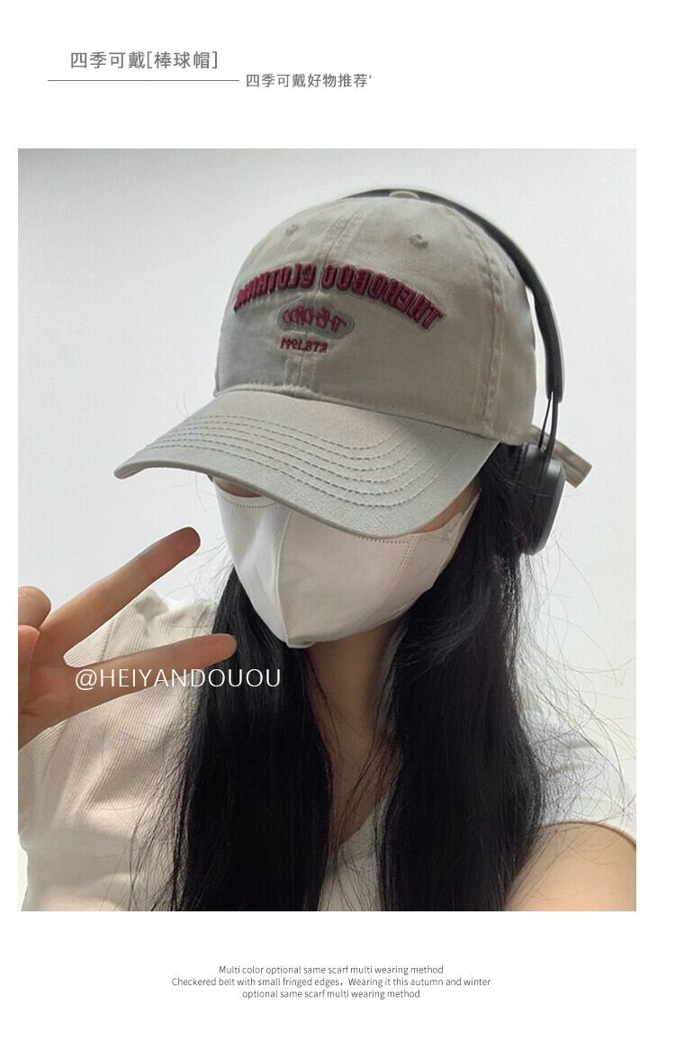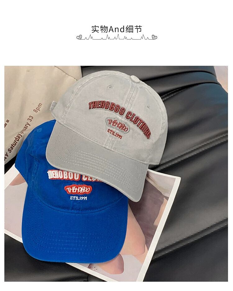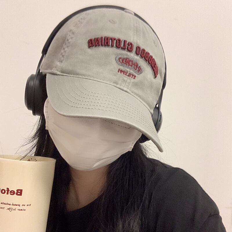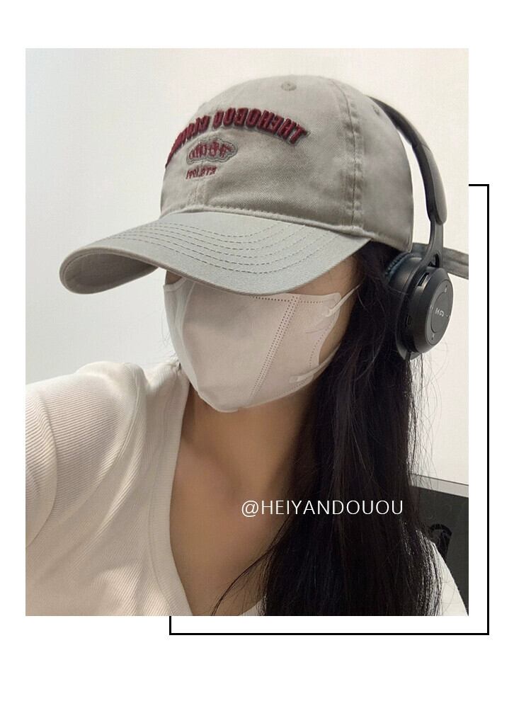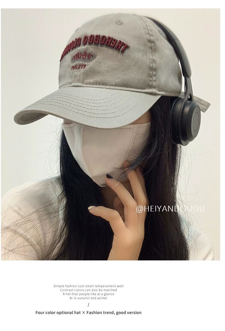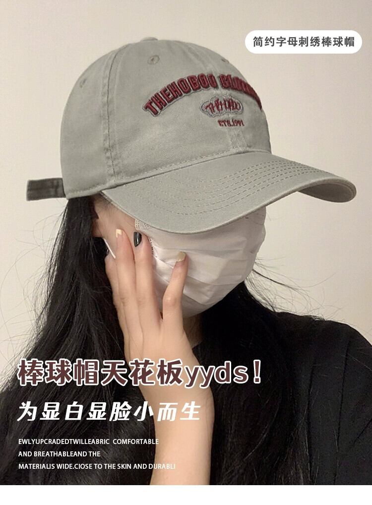 ウォッシュドカジュアルレターベースボールキャップのバージョンの女性2023新人小さな刺繍つば広ひさしキャップ大きな頭囲 15dd53419829234