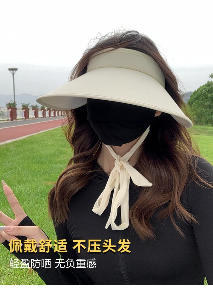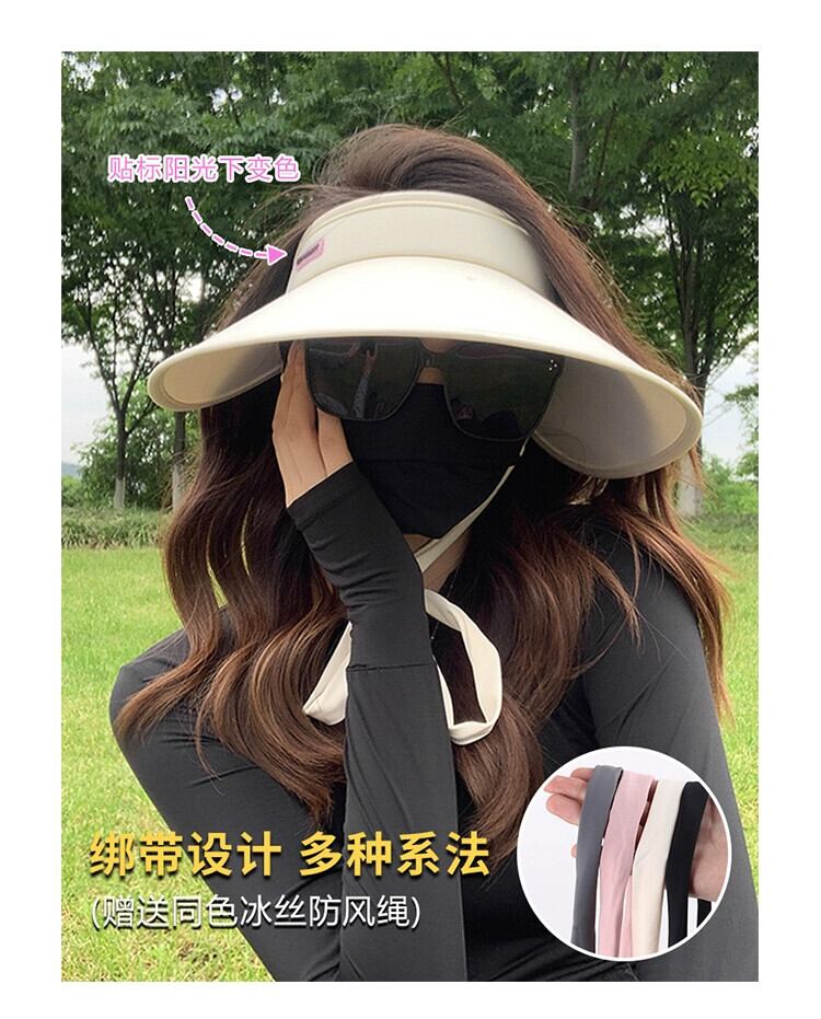 リボン空トップサンハット女性の夏の紫外線保護増加つばサイクリングサンハットブラックアイスシルクサンハット 帽子 サマー 夏物 15dd18764264719