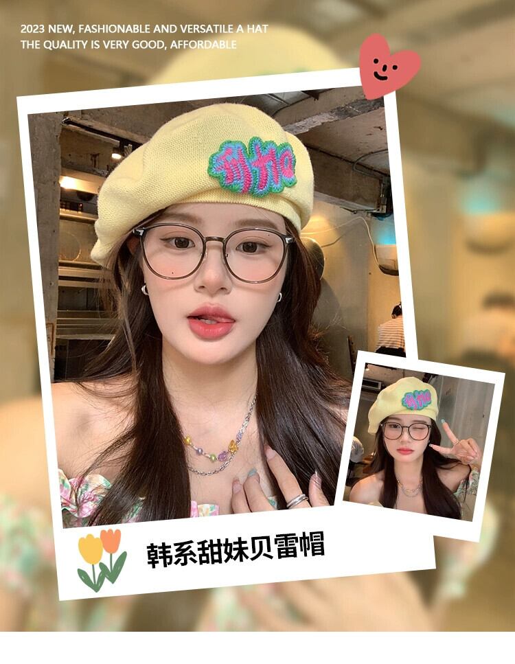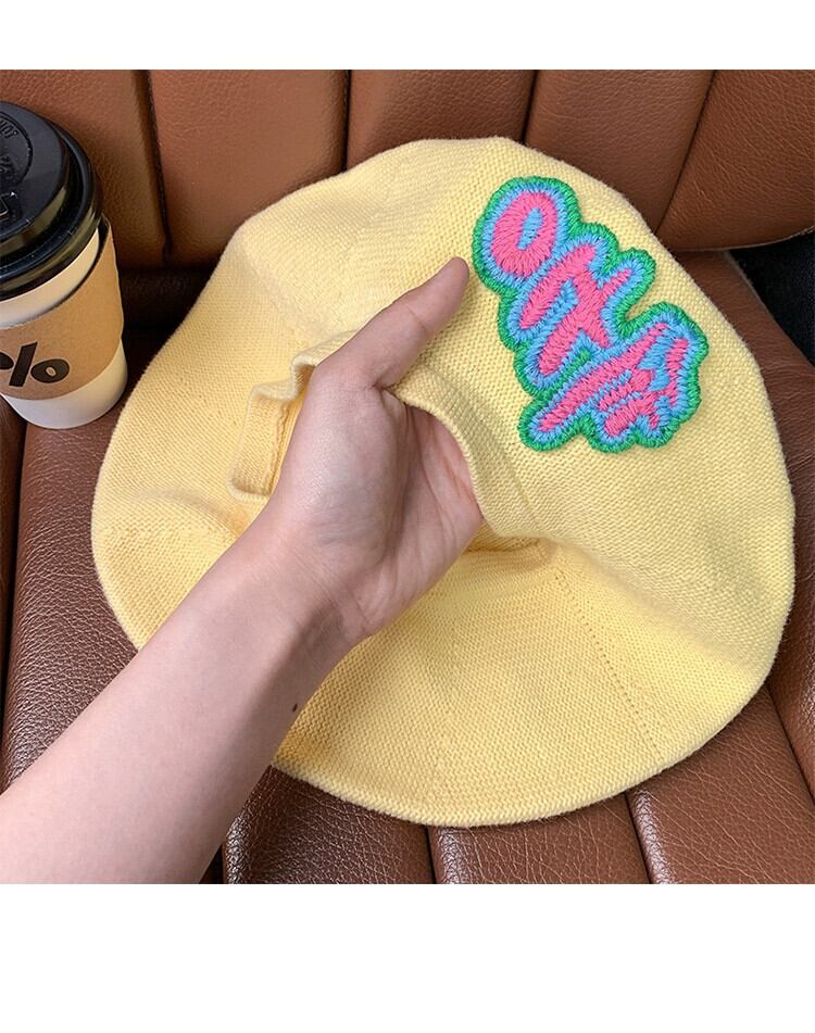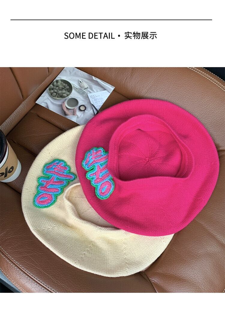 甘いクール〜 ese ニット文字刺繍ベレー帽女性の夏薄いセクション通気性ネット赤レトロ気質画家帽子 レッド 大人ガーリー スウィート キュート カジュアル サマー 夏物 ベレット ヘアアクセサリー 15dd57777086363