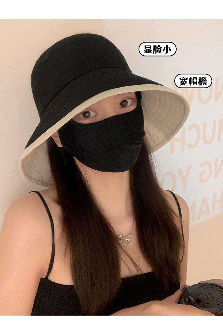 漁師の帽子の女性の夏の速乾性の大きなひさし日よけサンハット紫外線防止トラベルフェイス小さな黒いサンハット ブラック サマー 夏物 15dd94970440263