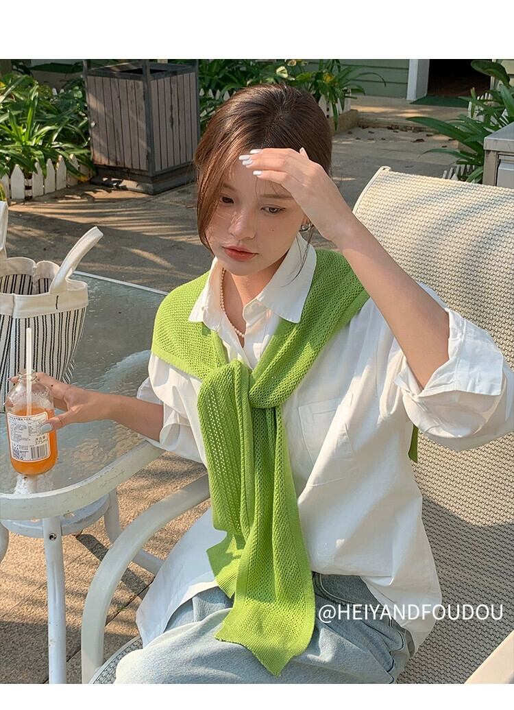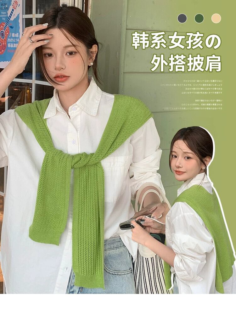 2023 新しいネットレッド小さなショール夏ニットアウターシャツ空調部屋暖かい肩ファッション偽襟 サマー 夏物 15dd98236337792