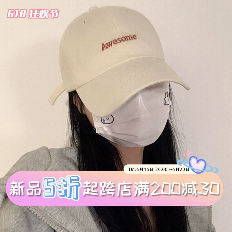 ピークキャップ女性 2023 春夏新作ショーフェイス小大頭囲文字刺繍曲線ひさし野球帽ベージュトレンド 帽子 スプリング 春物 サマー 夏物 15dd26299006988