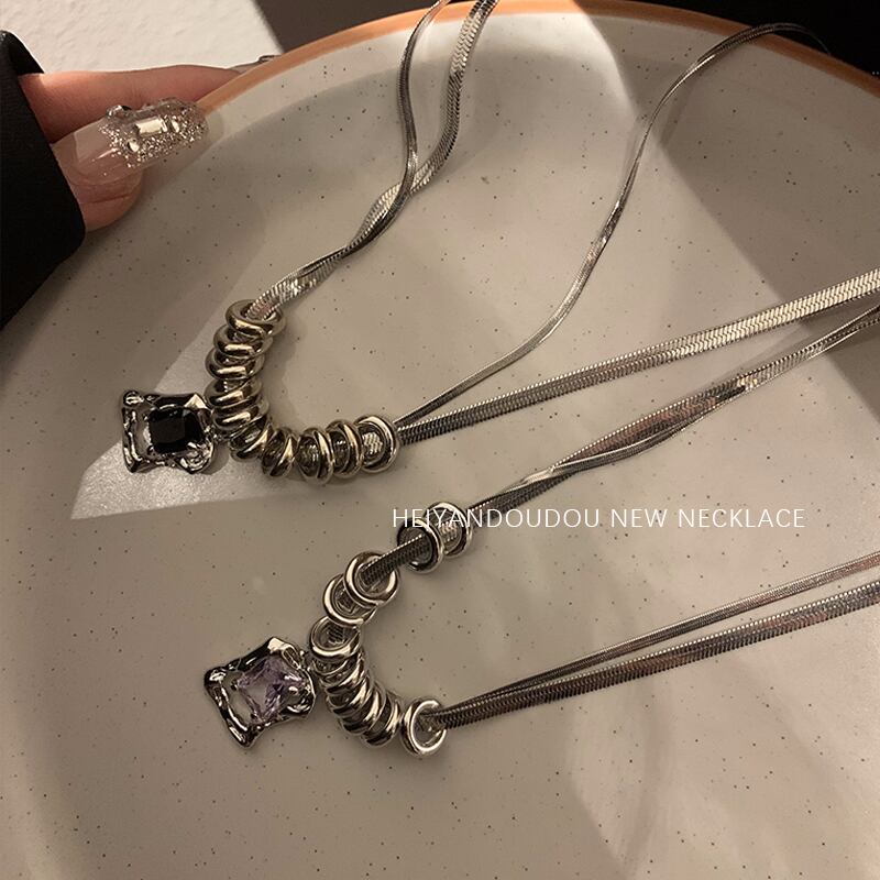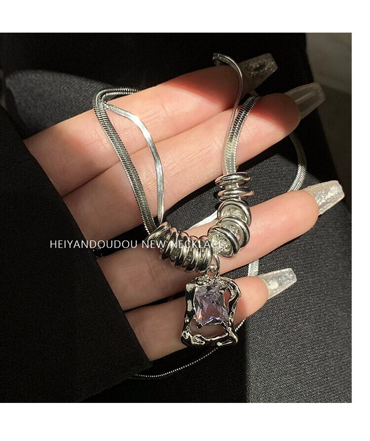 甘くてクールな女の子のペンダントネックレス女性ニッチデザイナースタイル二層鎖骨チェーン 2023 新しいスネークボーンチェーントレンド レース 大人ガーリー スウィート キュート カジュアル 15dd33223071330
