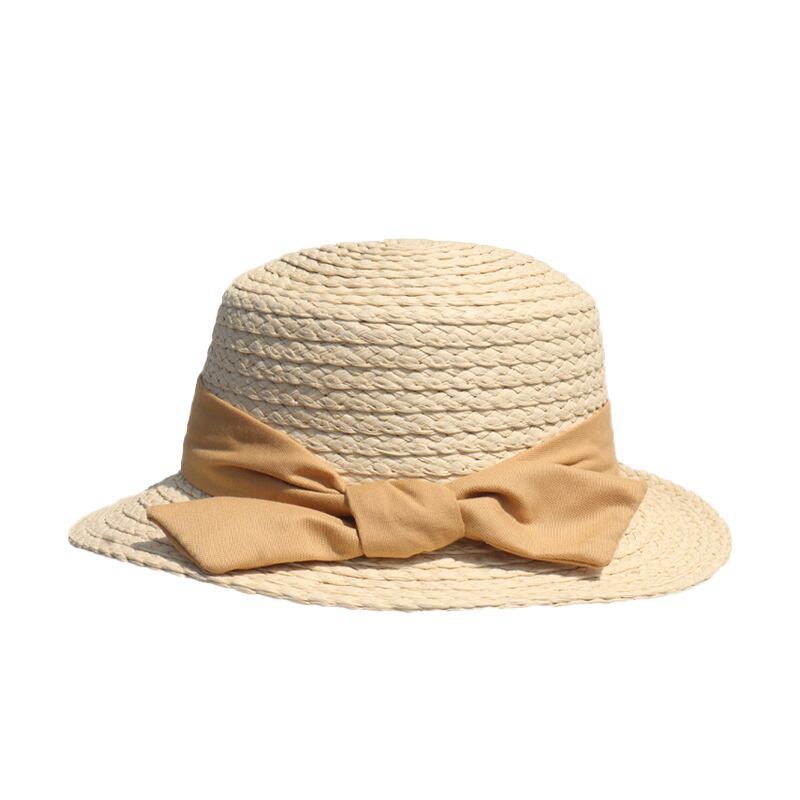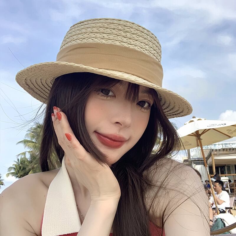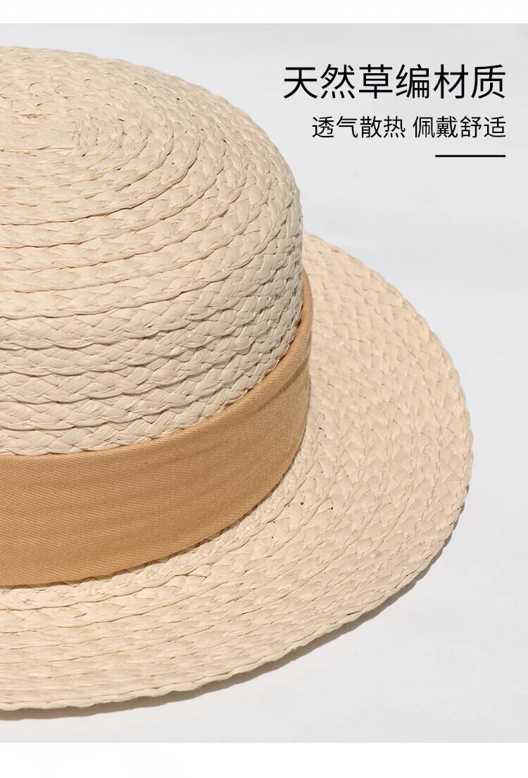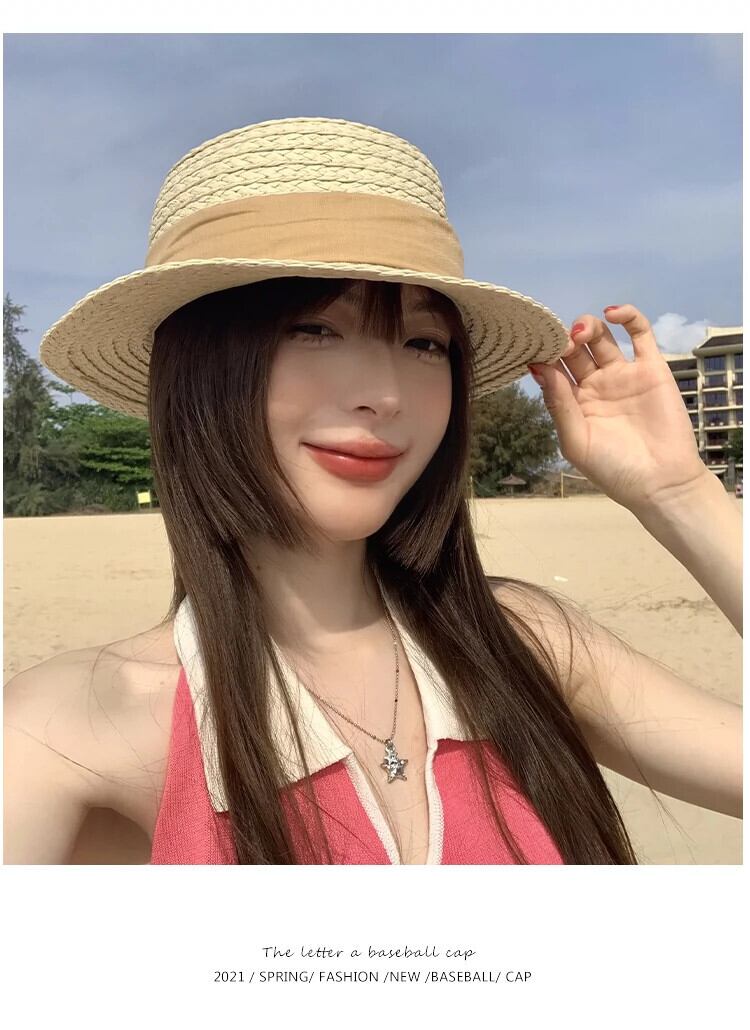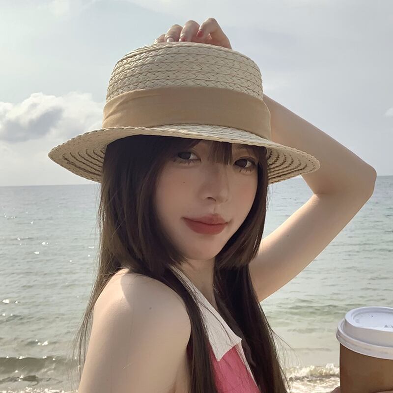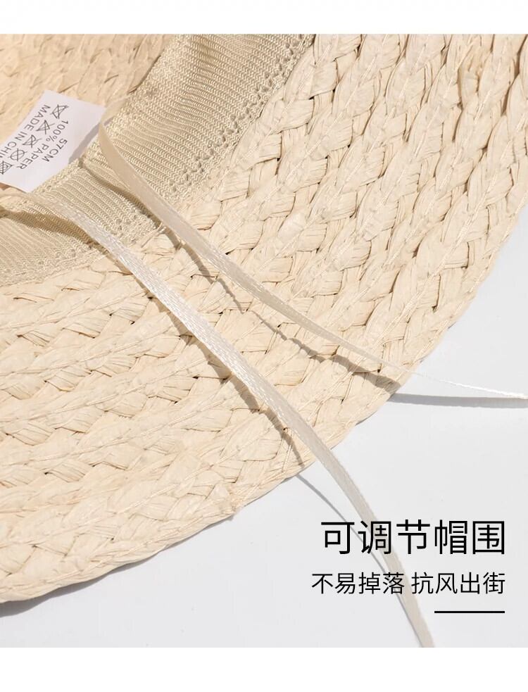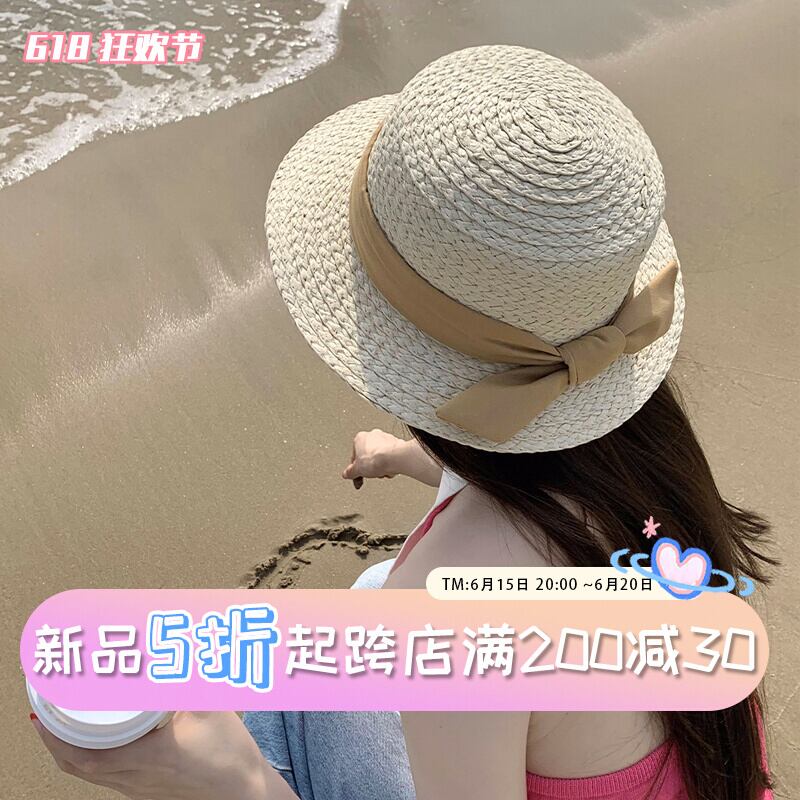 夏旅行海辺のビーチ帽子弓フラット麦わら帽子女性サンシェード太陽の帽子トップハット太陽の帽子休暇 リボン サマー 夏物 15dd82972984383