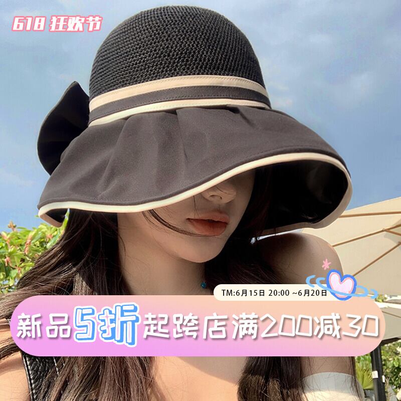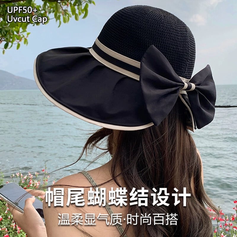 黒ゴム帽子女性の夏のハイエンド UV 保護サンシェード日よけ帽子旅行漁師の帽子大きなつば日よけ帽子 ブラック サマー 夏物 15dd40344613786