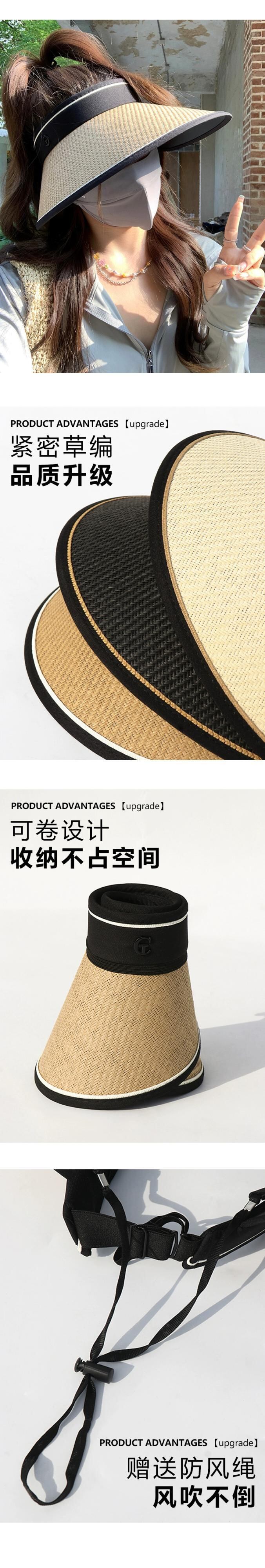 UPF50+ 大きなつば空のトップサンハット女性の屋外わら編み麦わら帽子黒接着剤 uv 太陽の帽子レディースサンハット ブラック 15dd79451919161