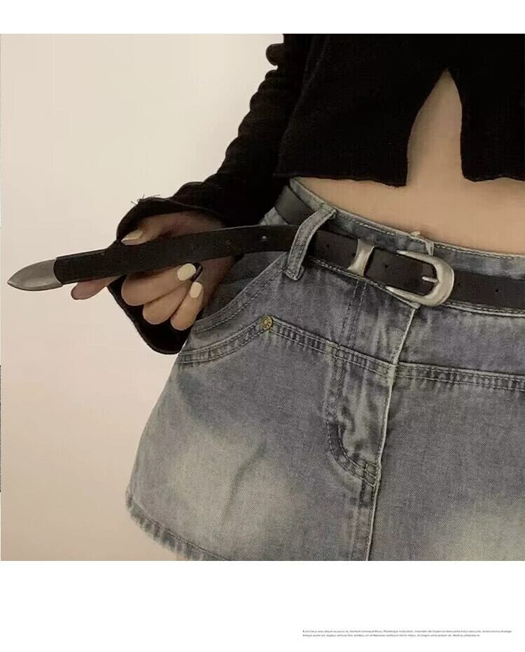 ベルト女性の 2023 新しいスタイル装飾ジーンズ黒ファッションデザインセンスニッチオールマッチメンズ細いベルト ブラック ハーネス 15dd14914240684