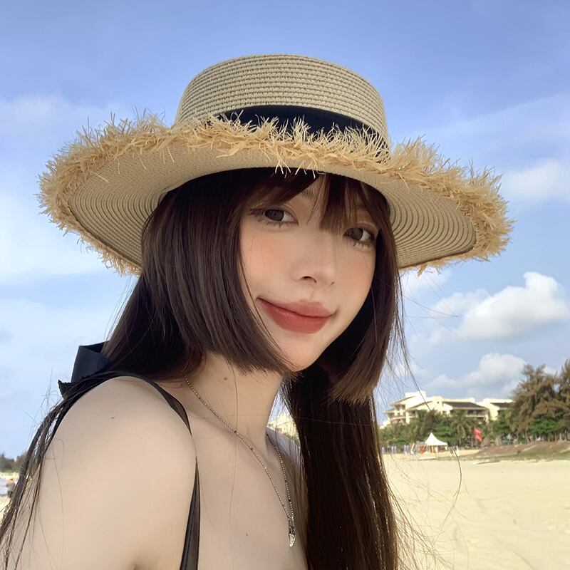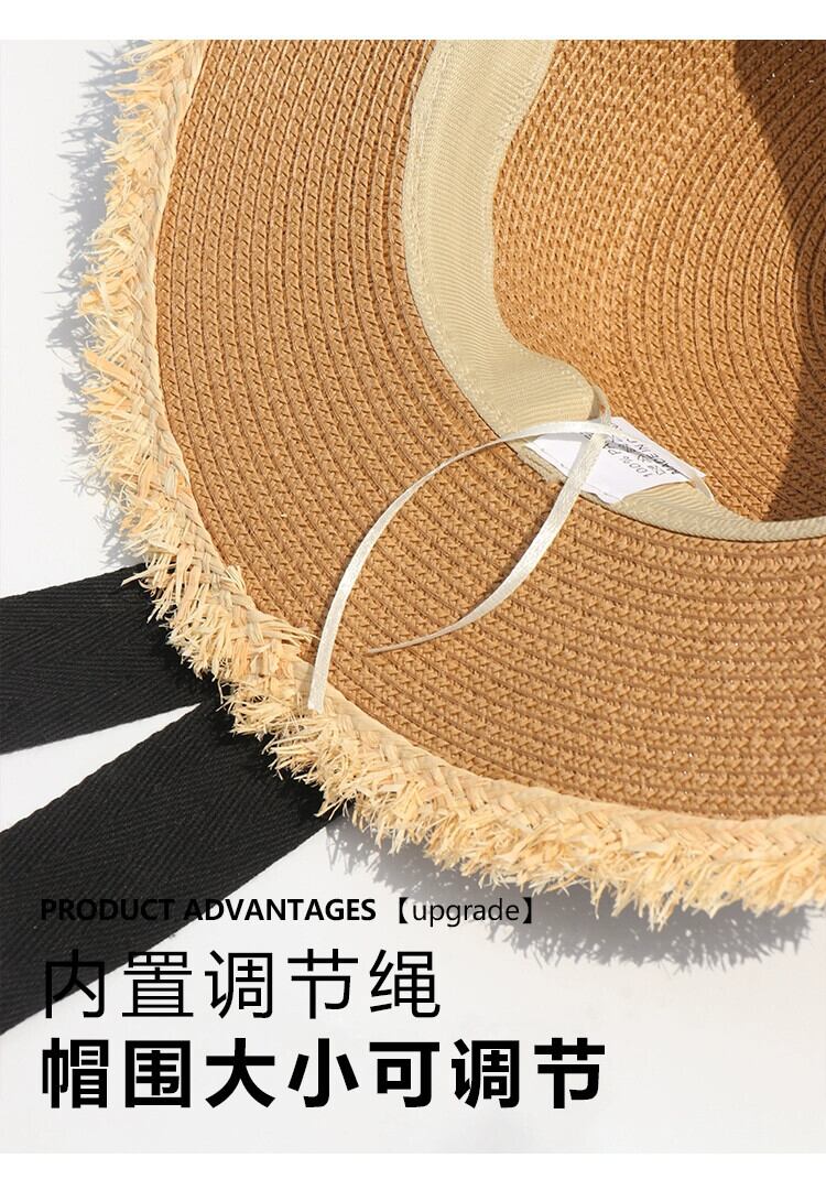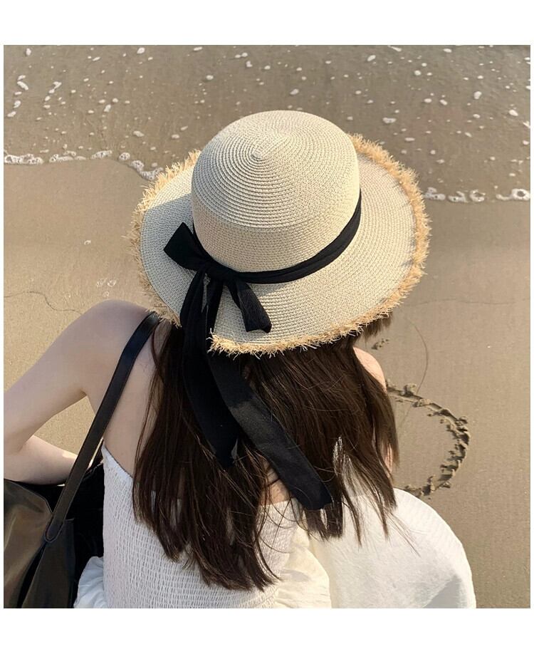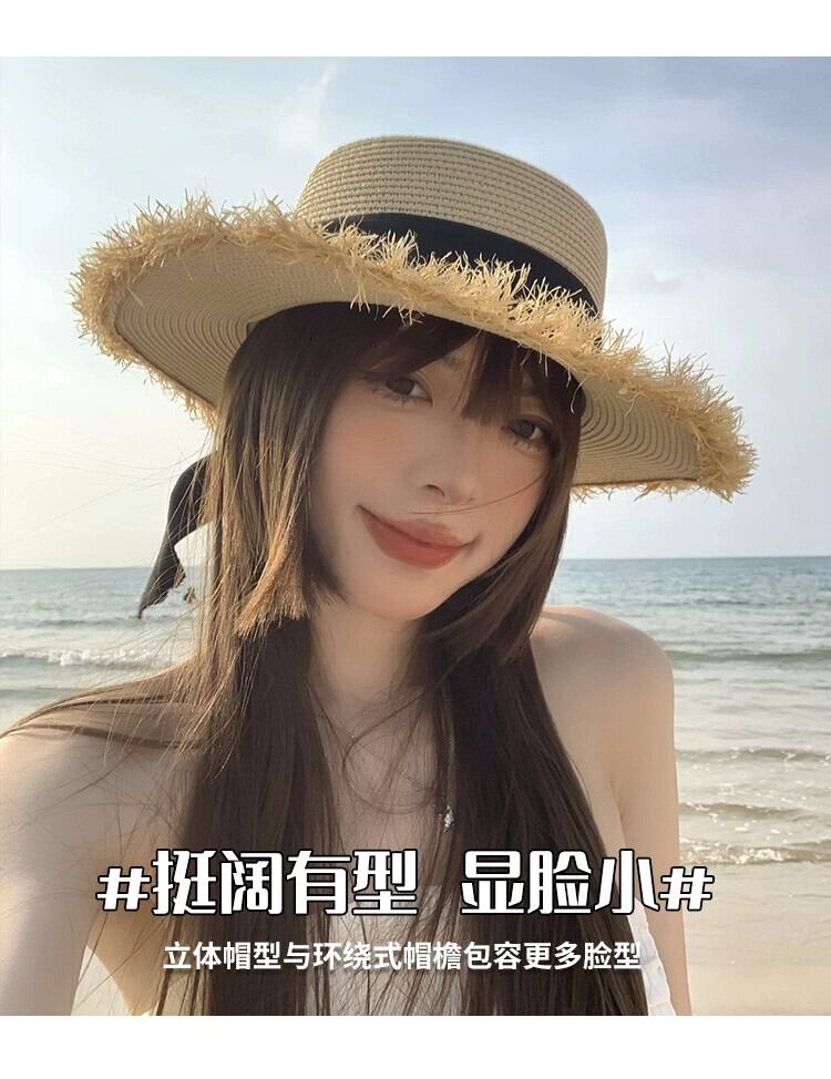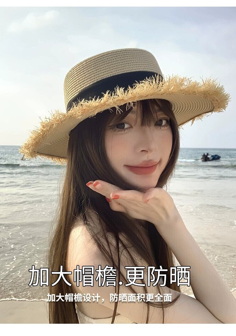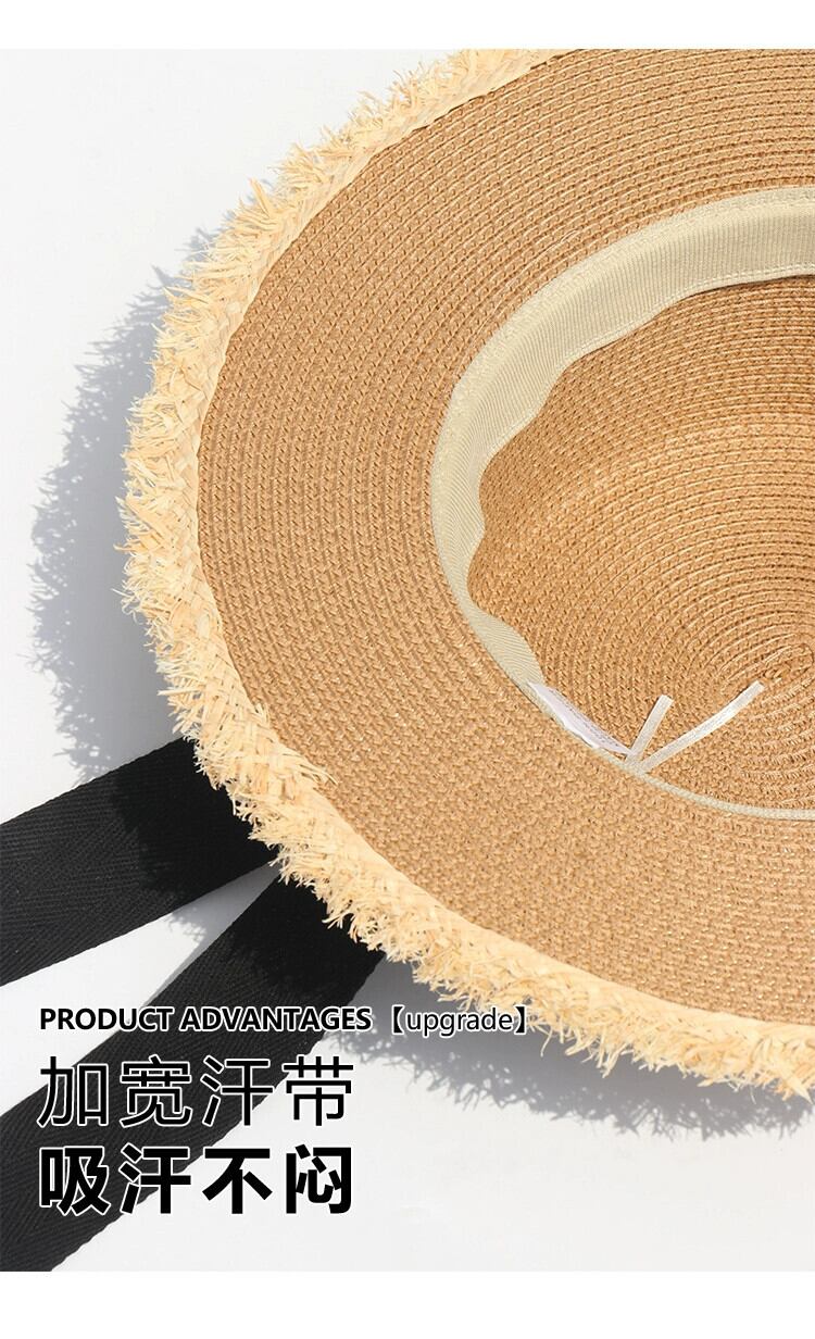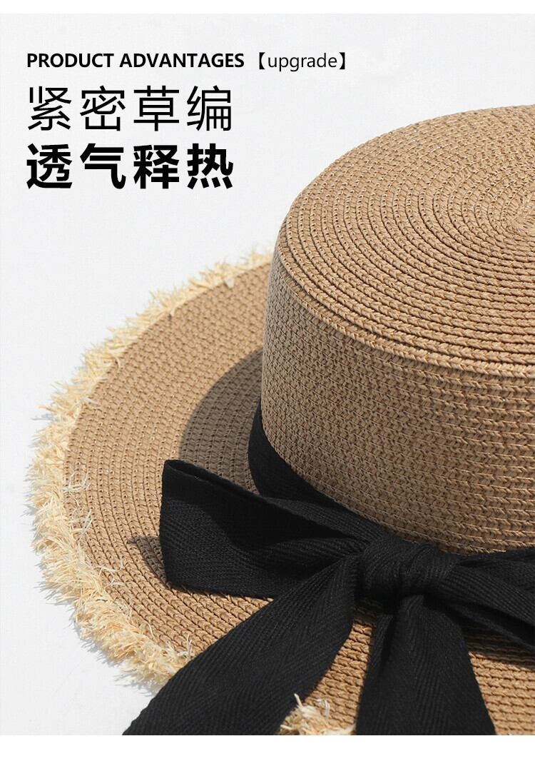 フラットトップ麦わら帽子女性の夏の海辺の休暇旅行 po 日焼け止め帽子サンバイザーわら太陽の帽子ビーチ帽子 サマー 夏物 15dd8444884452