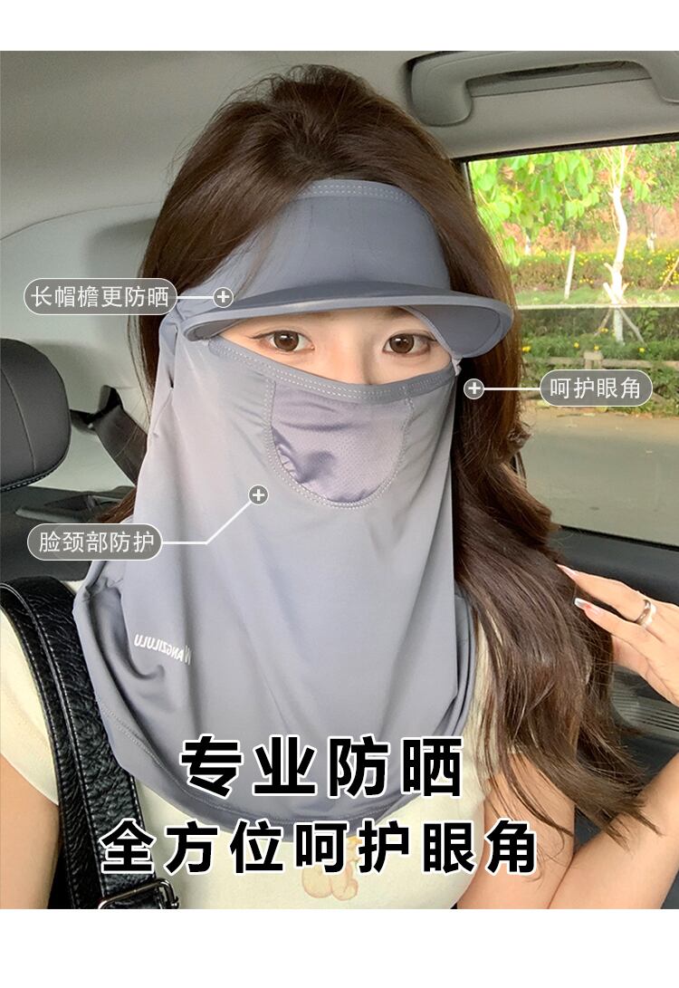 アイスシルク日焼け止めマスク女性のフルフェイス抗紫外線フェイスキニサンシェードフェイスマスク首保護統合運転通気性マスク 15dd41088975439