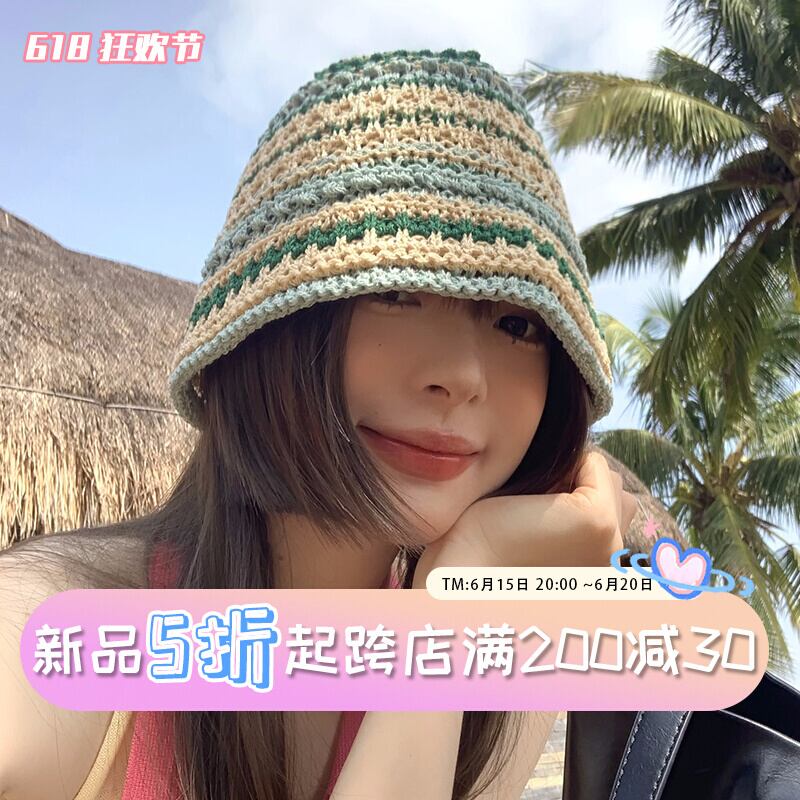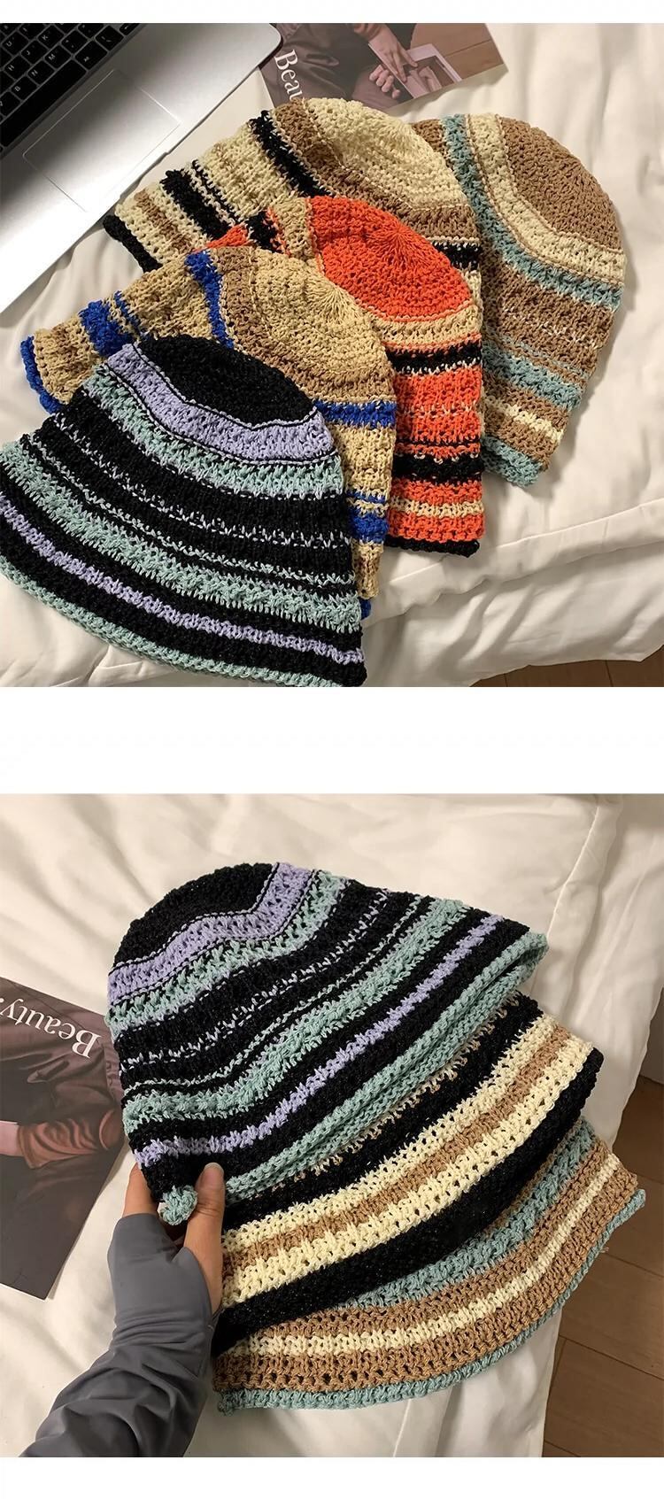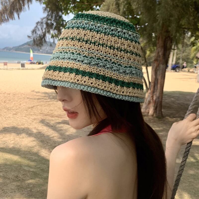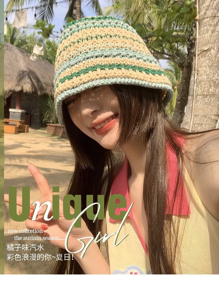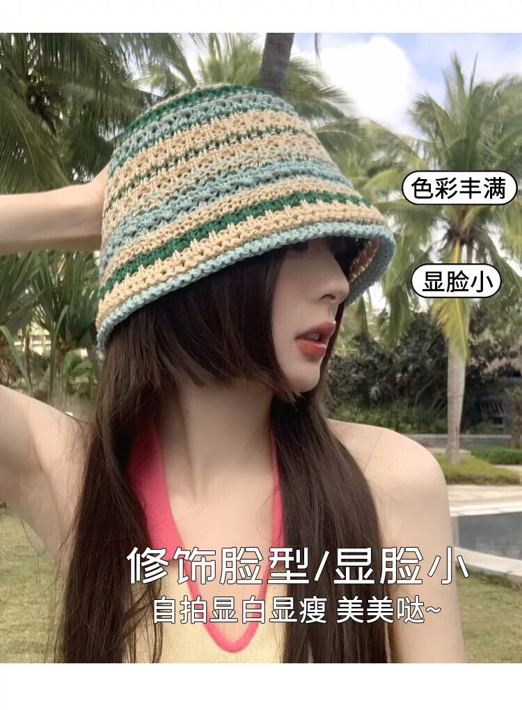 ese 2023 新しいニット中空漁師帽子女性の春と夏の通気性オールマッチ麦わら帽子バケットハットサンバイザー スプリング 春物 サマー 夏物 15dd34426507731