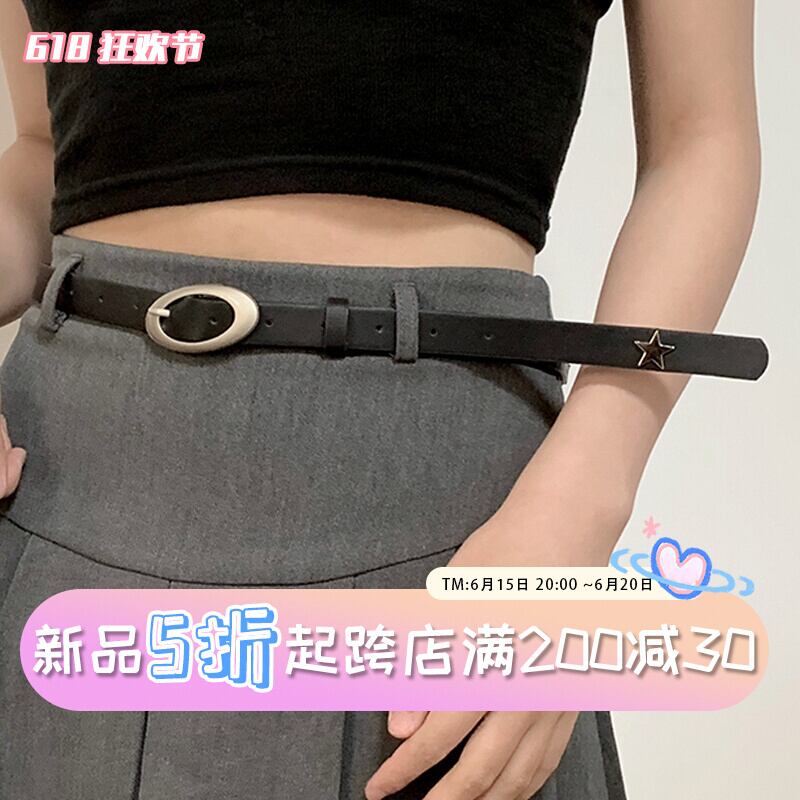 ベルト女性の 2023 新作夏のスター装飾ジーンズ黒ファッションデザインセンスニッチオールマッチメンズベルト ブラック サマー 夏物 ハーネス 15dd52608075788