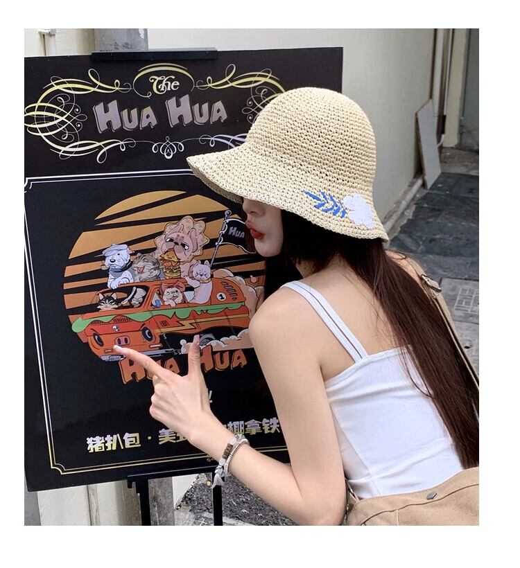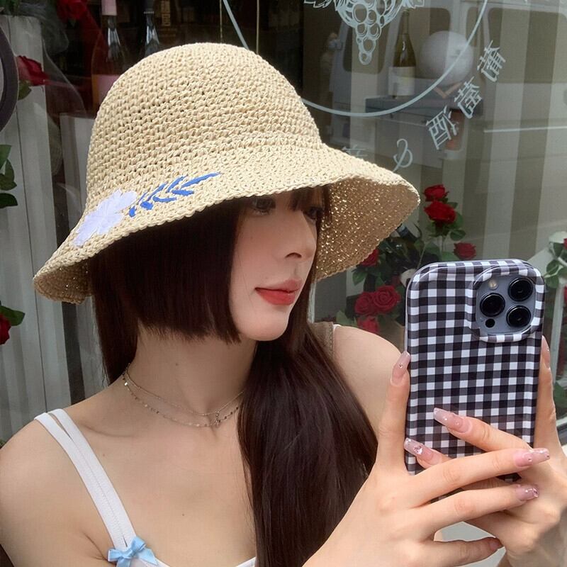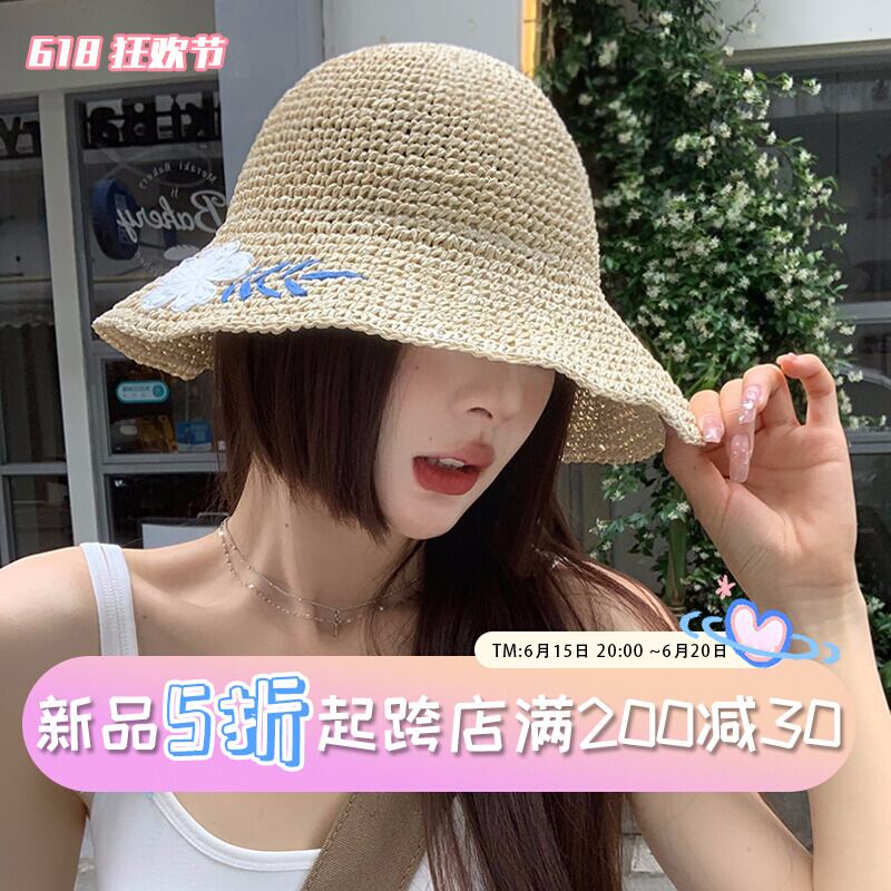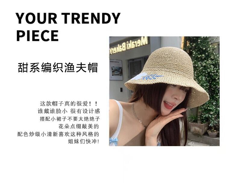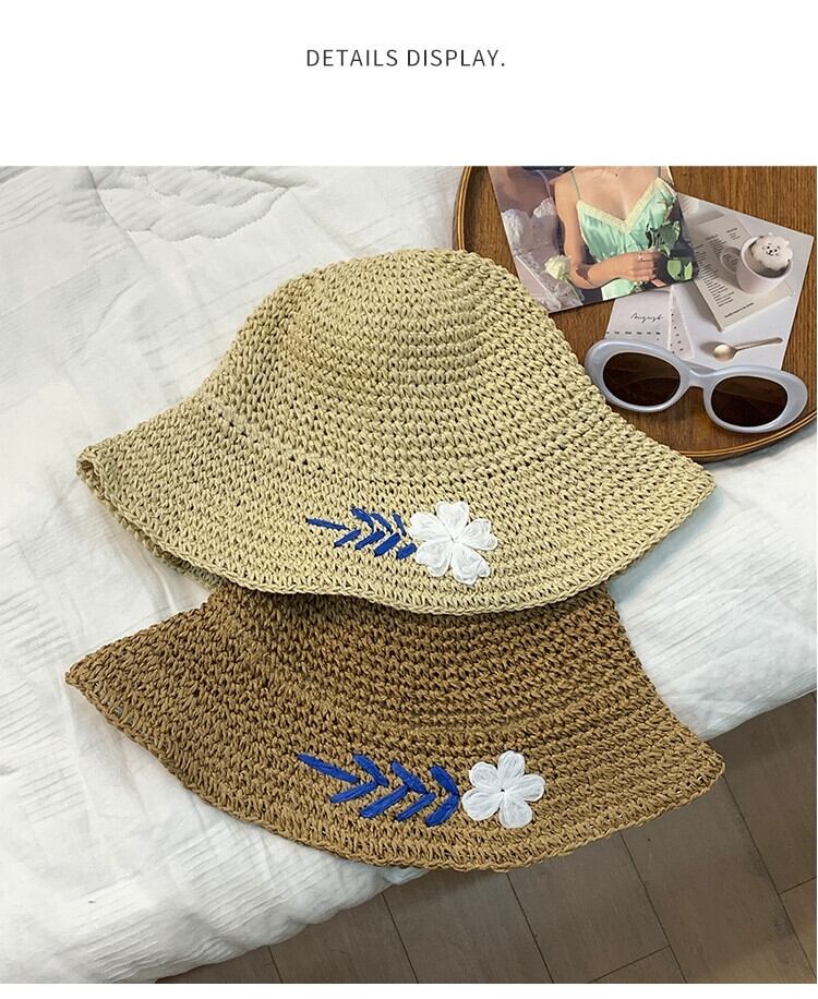 麦わら帽子女性の夏 2023 新しい ese 小さな新鮮な文学と芸術折りたたみ織物サンシェード日焼け止め花漁師帽子 サマー 夏物 フラワーデザイン 15dd13090015488