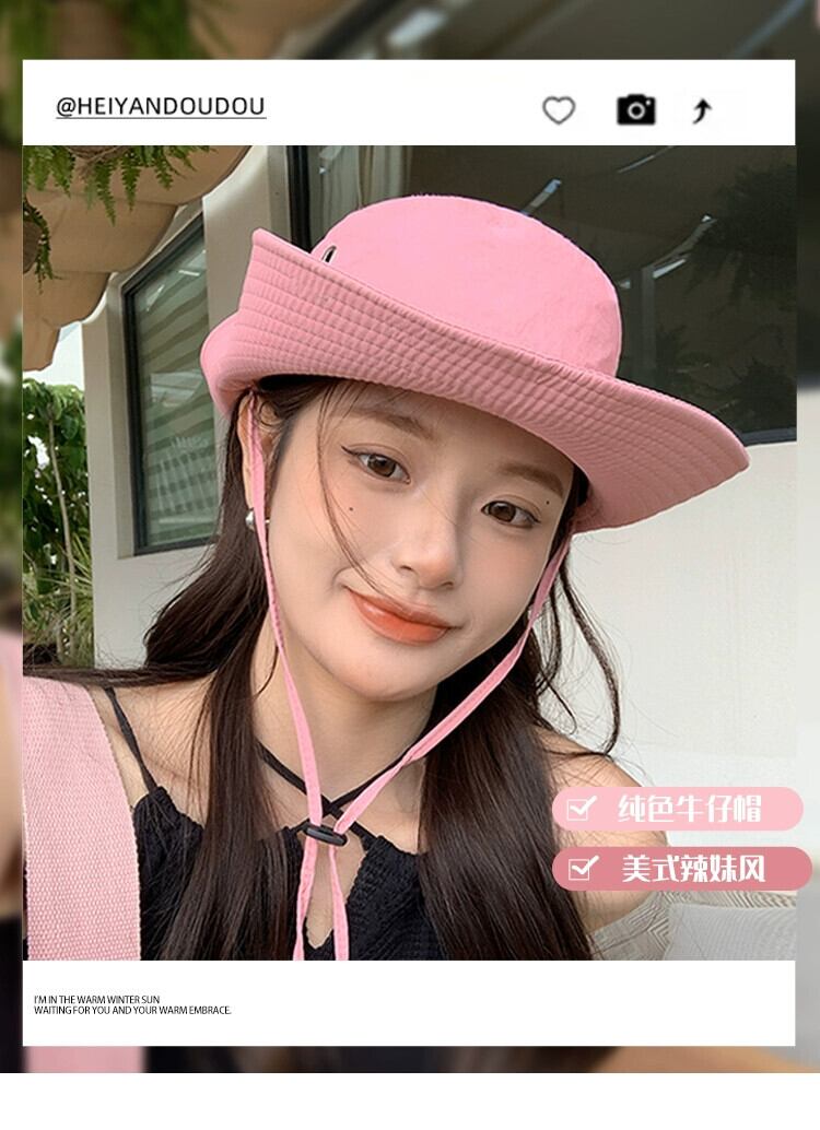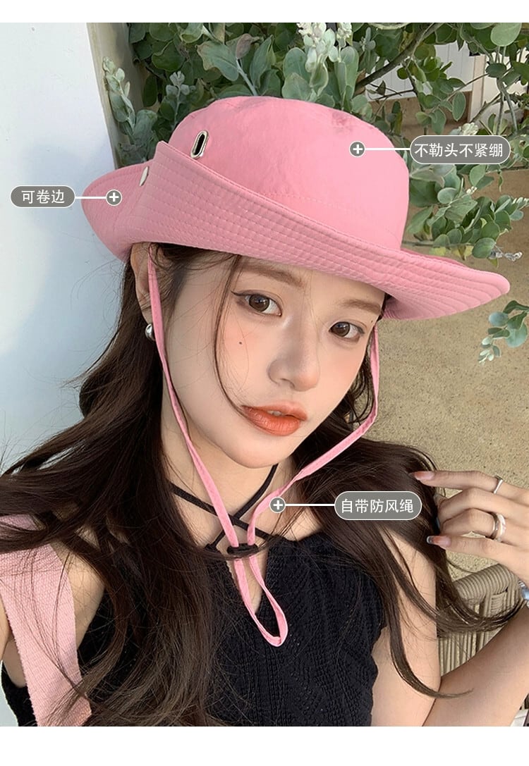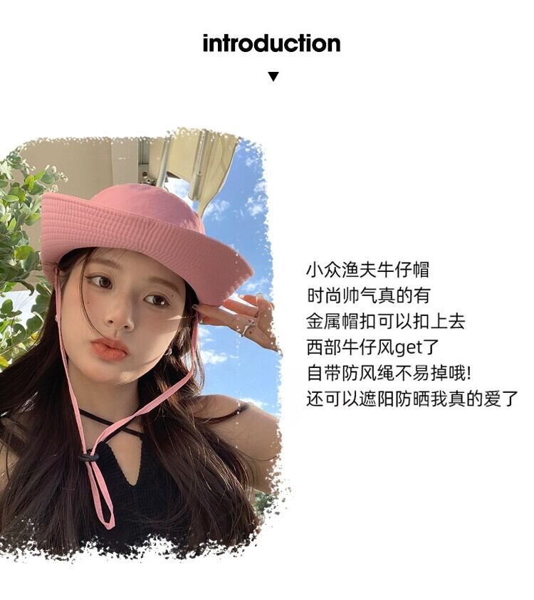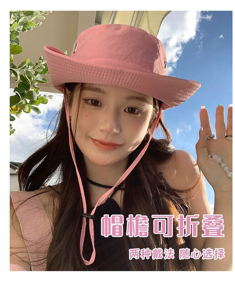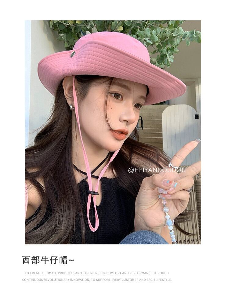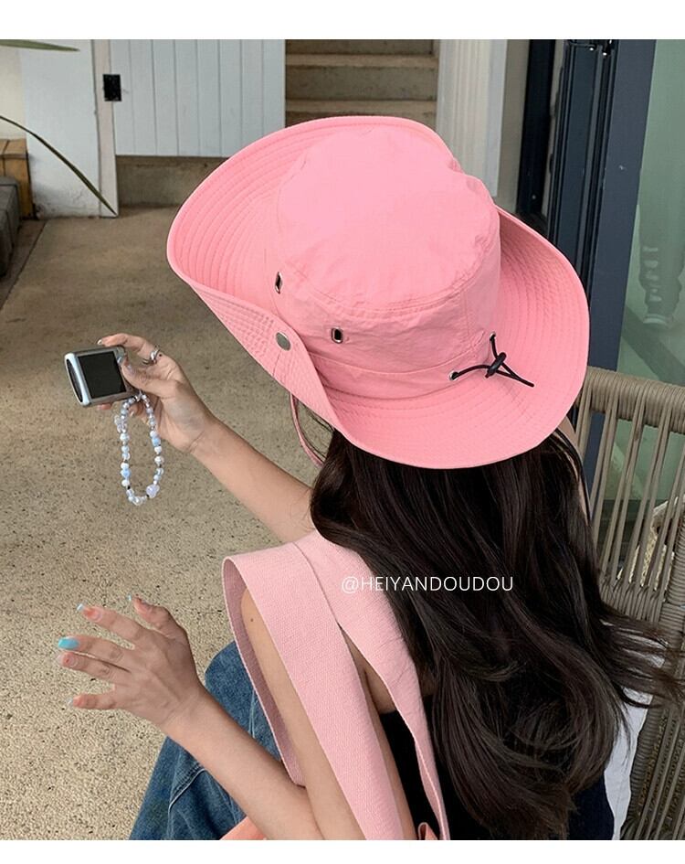 屋外登山帽子日焼け防止キャンプ漁師帽子女性ウエスタンカウボーイハット ese 巾着ピンクサンシェード釣り帽子潮 15dd98713201793