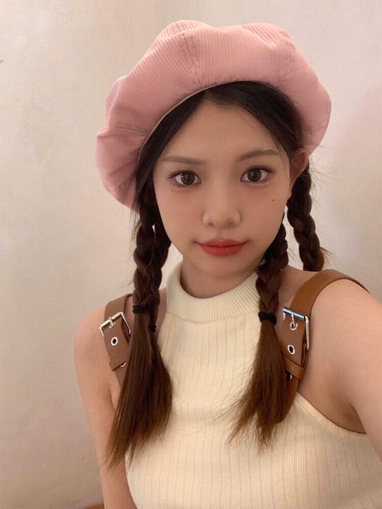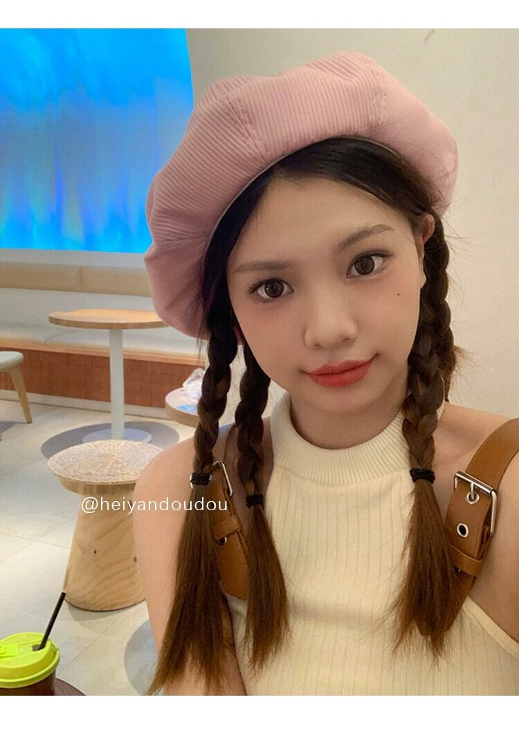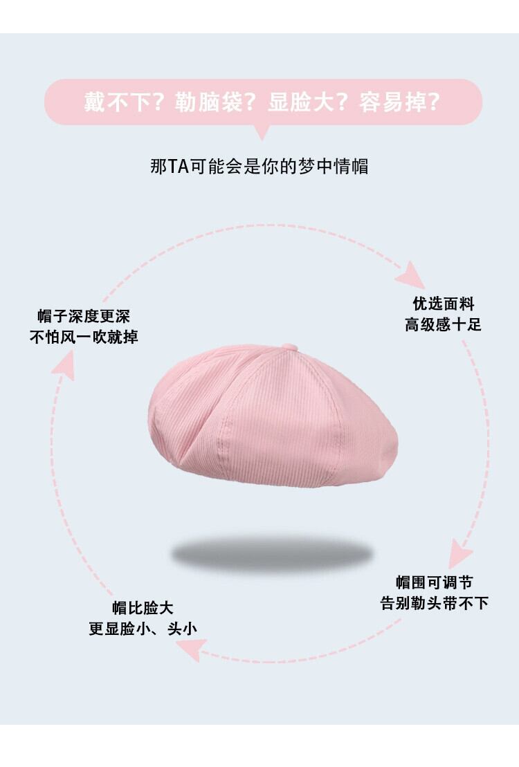 夏ベレー帽女性バージョンの顔の小さなワイルドベレー帽ペインターキャップ、エセピンク薄セクション大きな頭囲帽子 サマー 夏物 ベレット ヘアアクセサリー 15dd49576103722