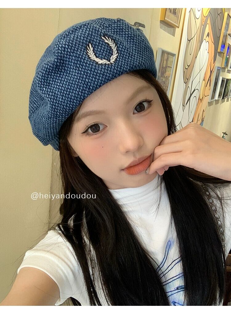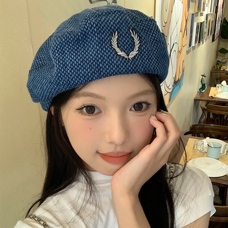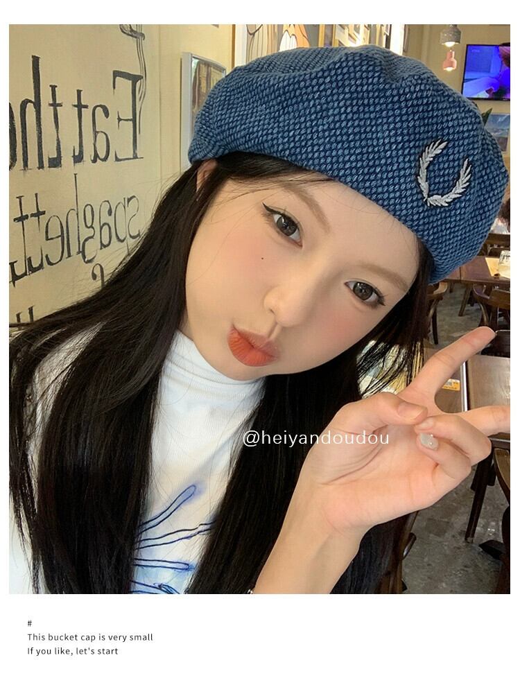 レトロファッションデニムベレー帽女性イン気質オールマッチ画家の帽子張天愛同じスタイルの薄い八角形の帽子潮 ベレット ヘアアクセサリー 15dd59510776571