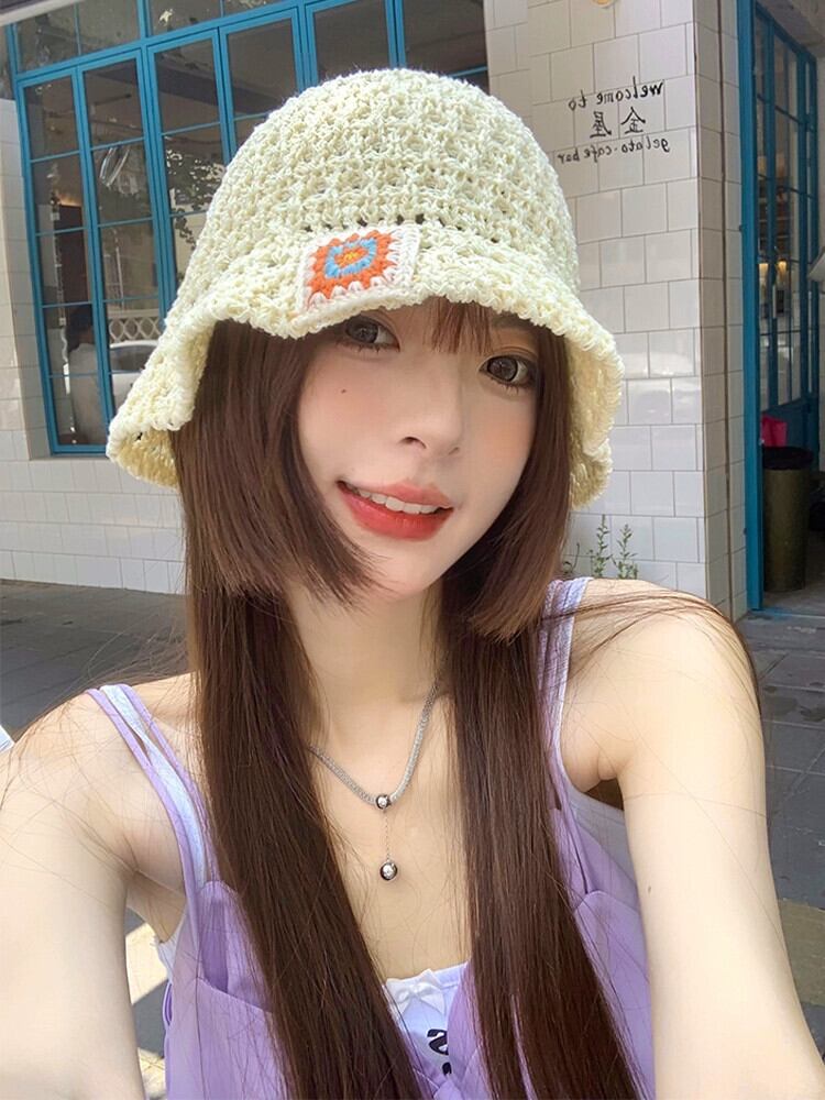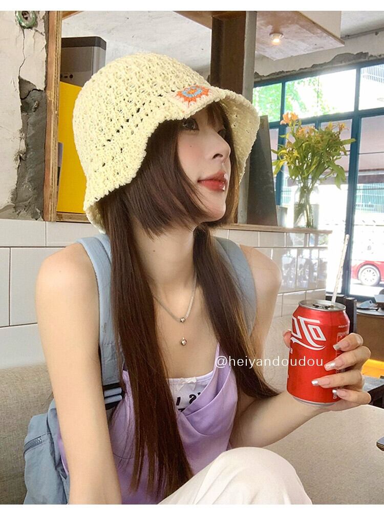 漁師の帽子の女性 2023 新しい夏バージョンの ins 編組中空屋外サンシェード日焼け止め盆地帽子女性ショー小顔 サマー 夏物 15dd26513531368
