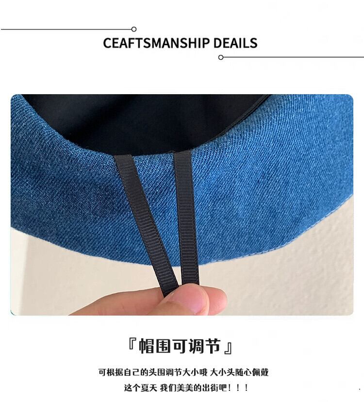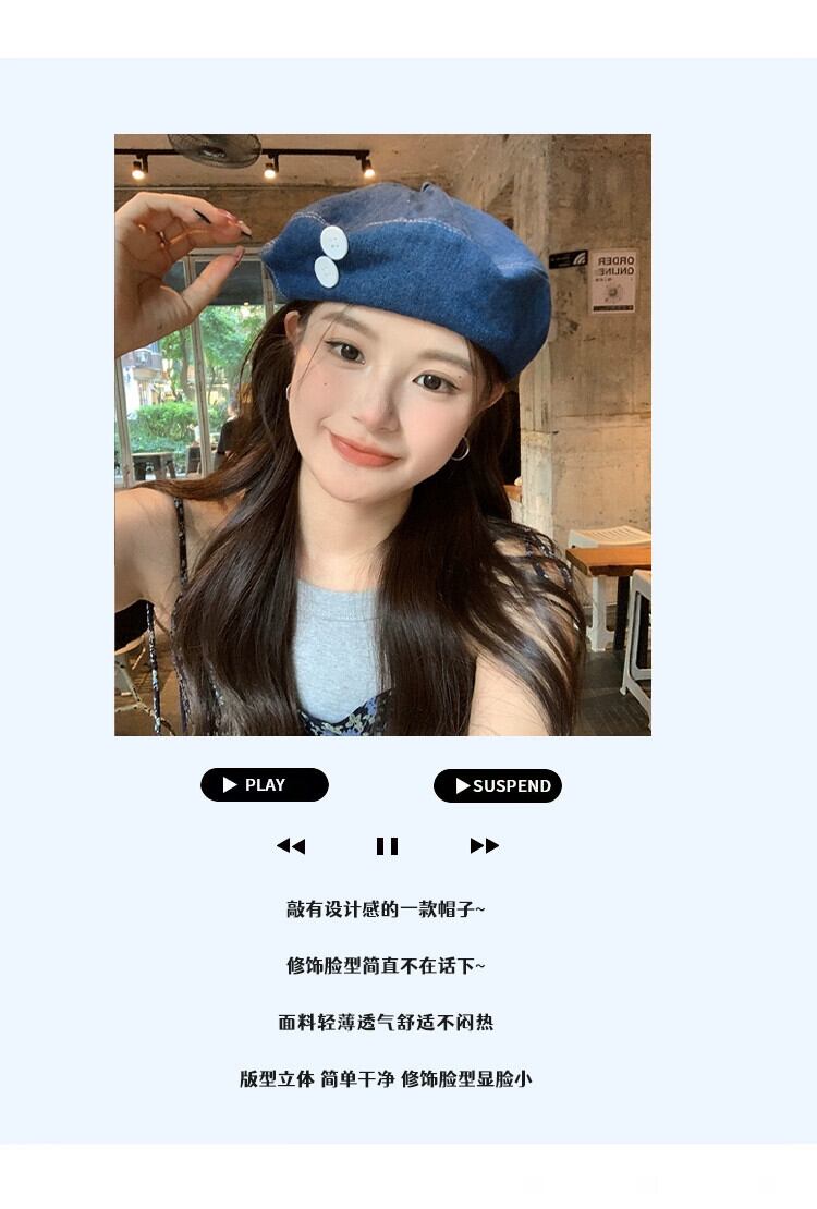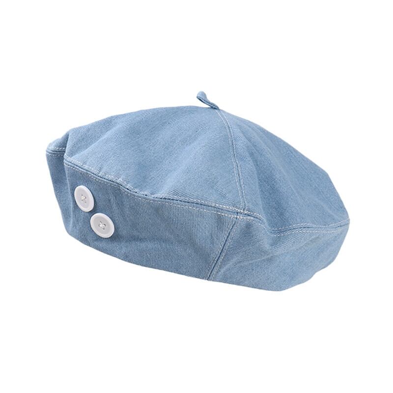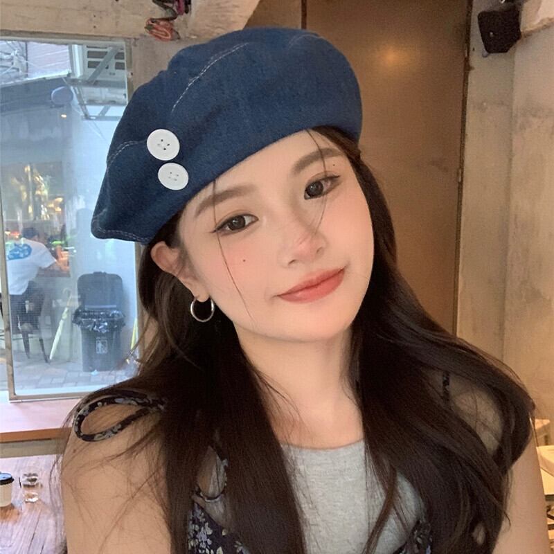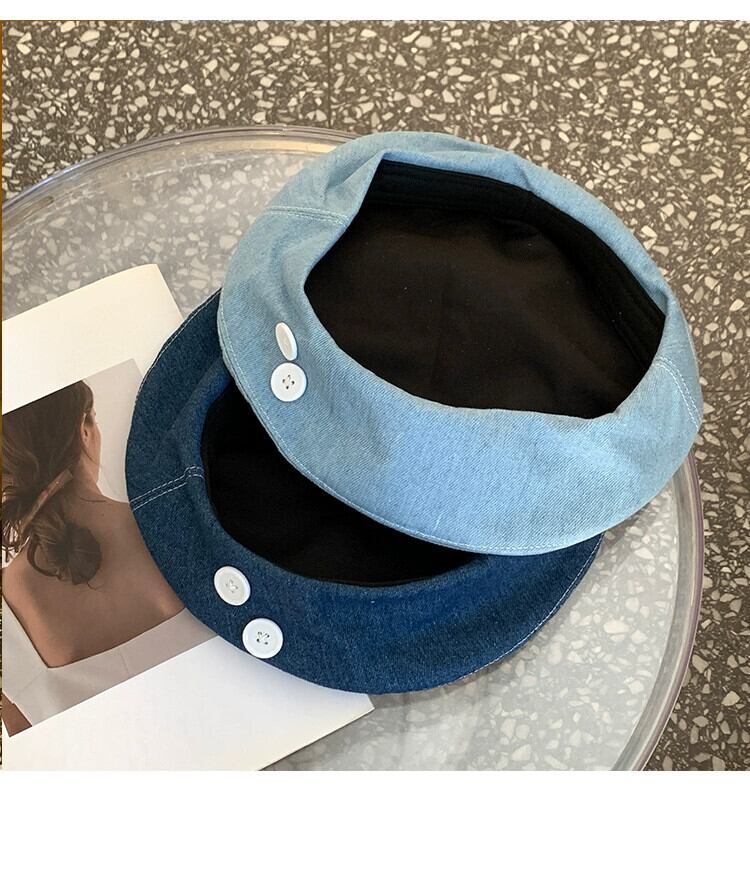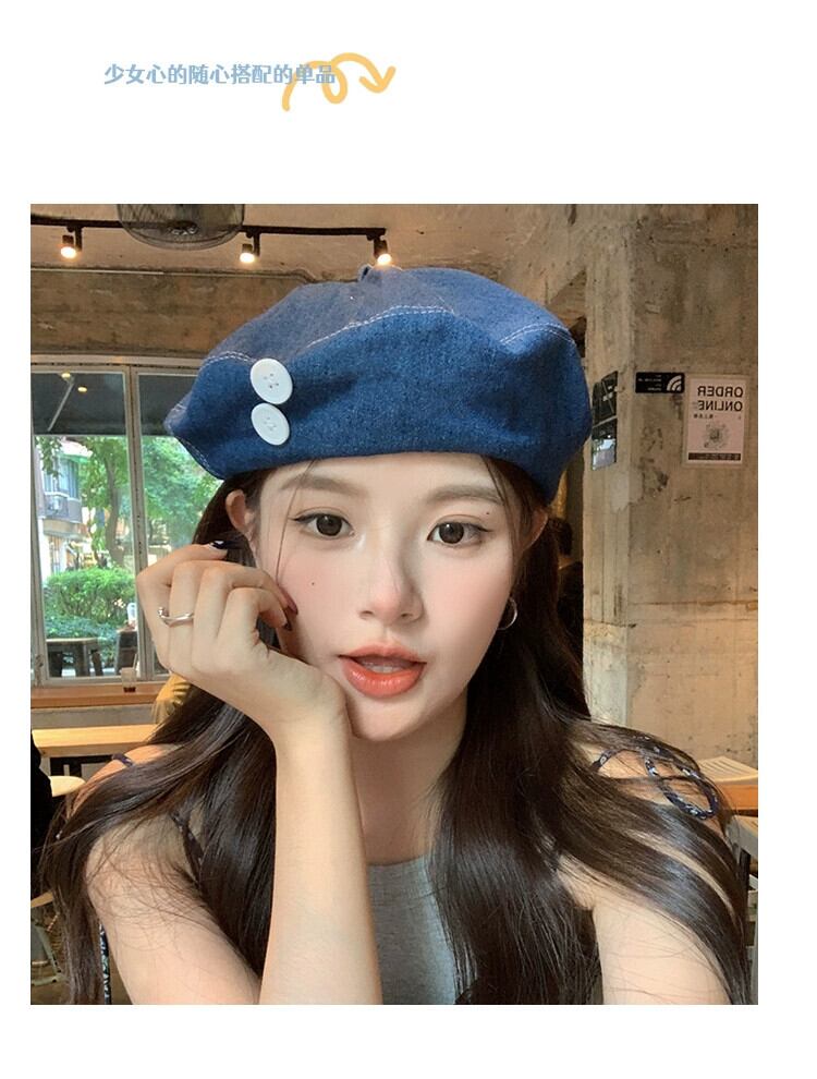 ニッチデザインデニムベレー帽レディースバージョンのワイルドボタンベレー帽ペインターハット大きな頭囲帽子ショーフェイス小潮 ベレット ヘアアクセサリー 15dd20542558177