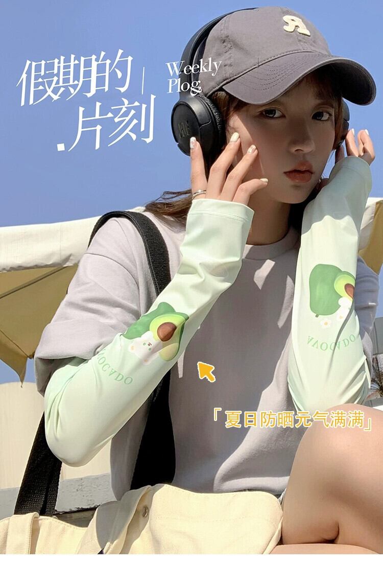 かわいい漫画日焼け止めアイススリーブ 2023 新しい女性の夏の薄いセクションアイスシルクルーズスリーブ運転と乗馬腕保護 大人ガーリー スウィート キュート カジュアル サマー 夏物 15dd6078451565