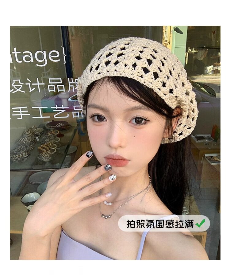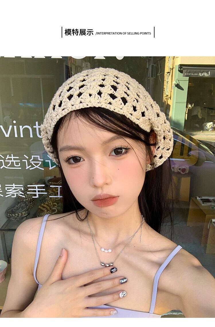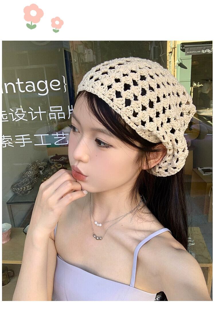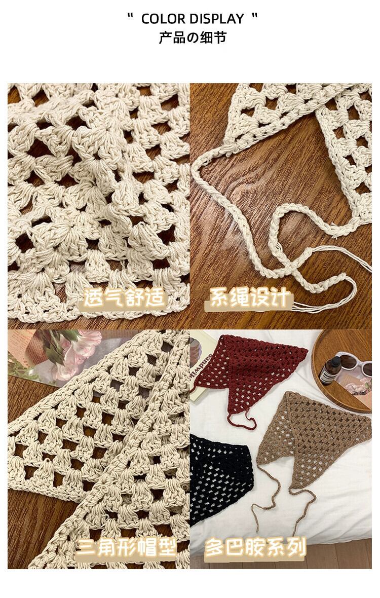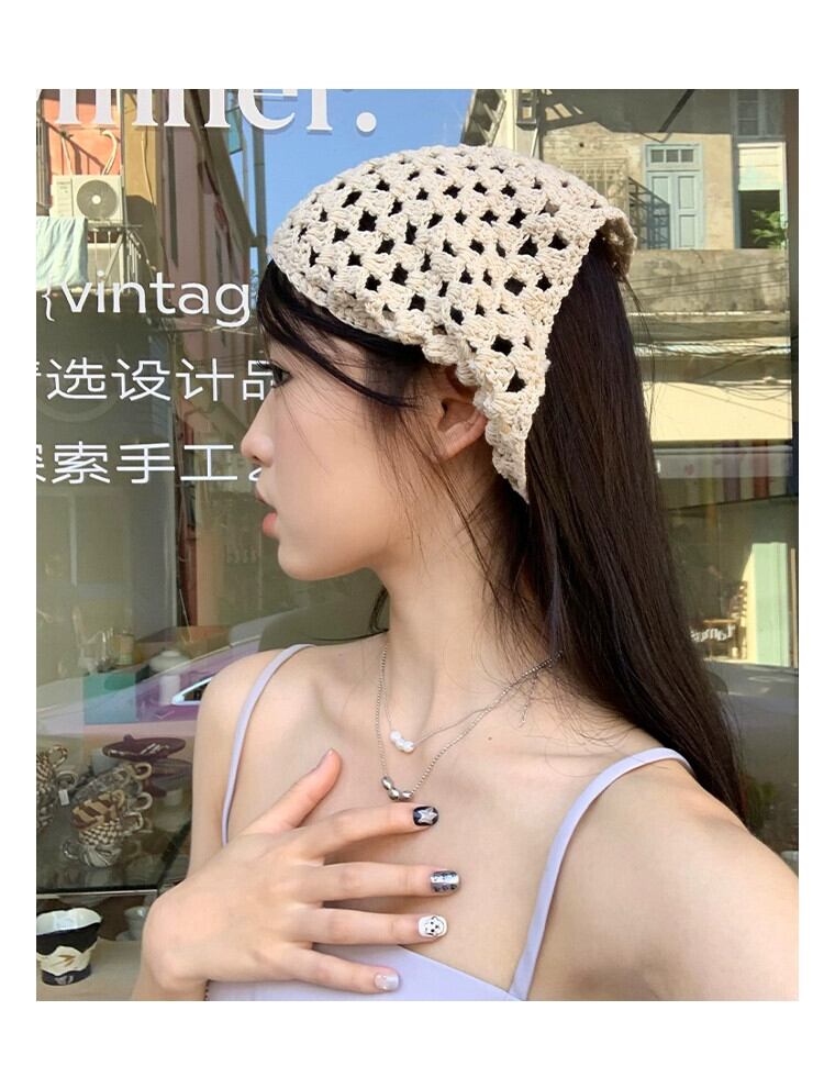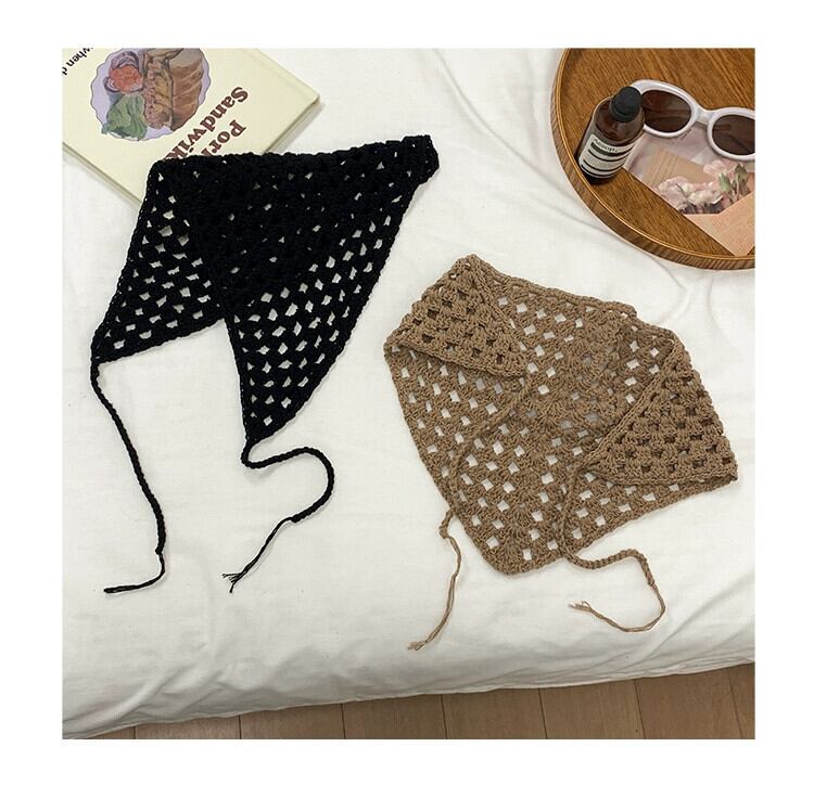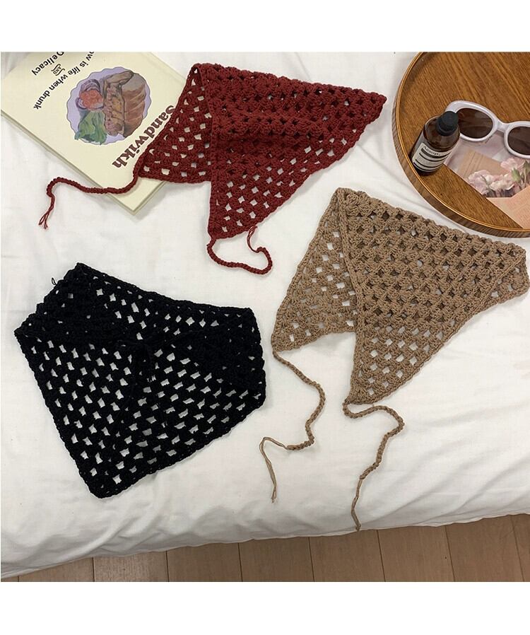 ese 手作りかぎ針編みスカーフ女性 2023 新しい甘いインフレンチトライアングルスカーフネットレッドニットヘアバンドヘッドバンド 大人ガーリー スウィート キュート カジュアル ヘアアクセサリー 15dd7900292880