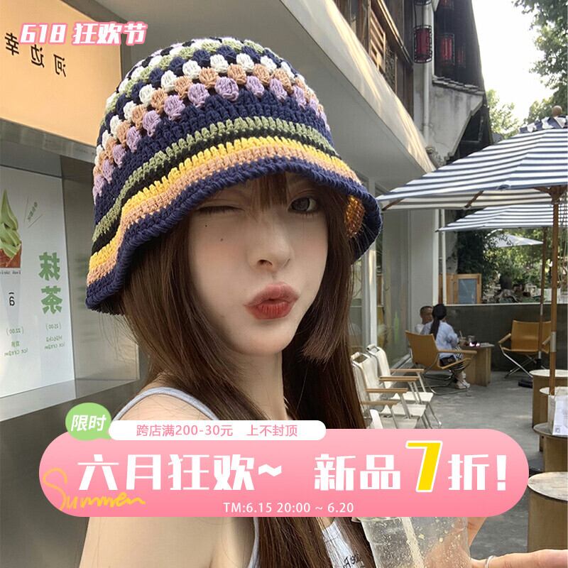 ドーパミンスタイル手織り漁師帽子女性の夏のお出かけ通気性の良い顔小さな帽子秋と冬の日よけバケットハット サマー 夏物 オータム 秋物 ウィンター 冬物 15dd74341456427