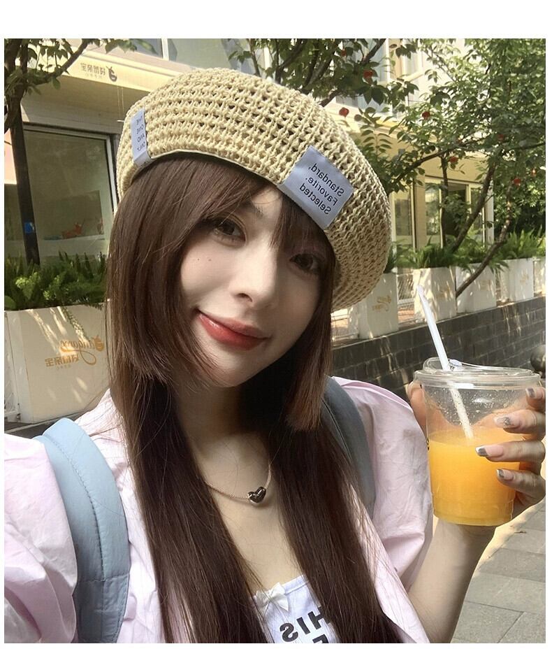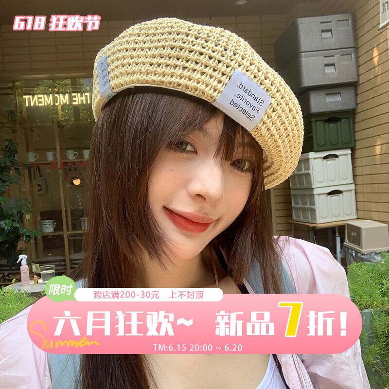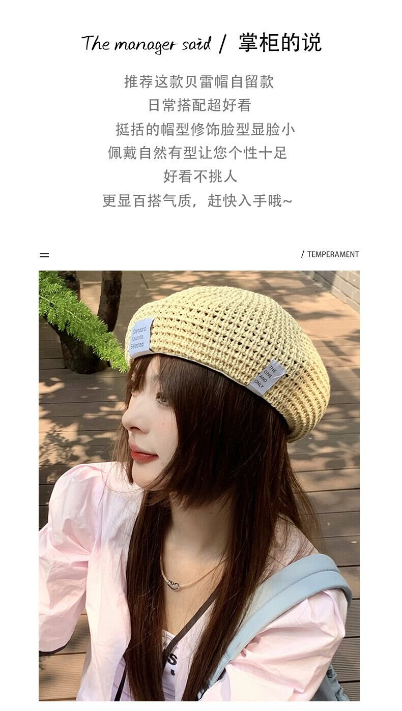 わら編み中空薄型ベレー帽女性の夏の 2023 新しい通気性の顔の小さな画家の帽子多用途ビッグヘッド帽子 サマー 夏物 ベレット ヘアアクセサリー 15dd15414895979