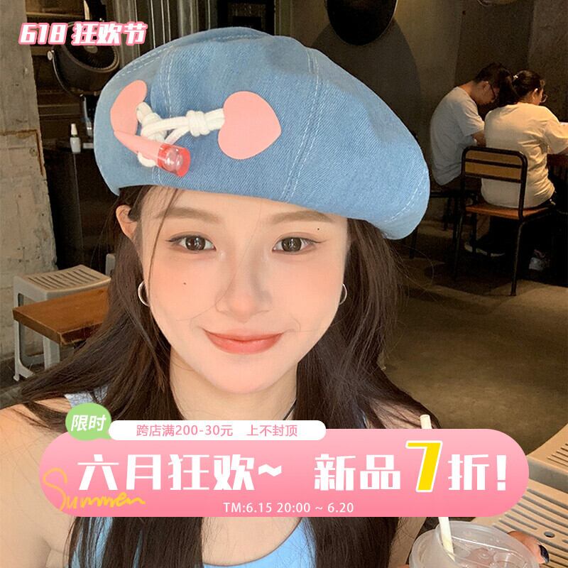 カウボーイベレー帽女性の夏の新バージョン甘いショーフェイス小さなつぼみペインターハットオールマッチ大きな頭囲帽子潮 大人ガーリー スウィート キュート カジュアル サマー 夏物 ベレット ヘアアクセサリー 15dd28260281740