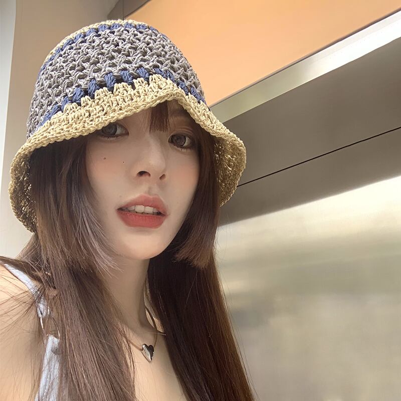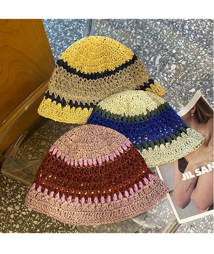 わら漁師の帽子女性 2023 新しい夏 ese スタイルショー顔小さな野生の麦わら帽子ビーチサンシェード太陽の帽子 サマー 夏物 15dd13972440302