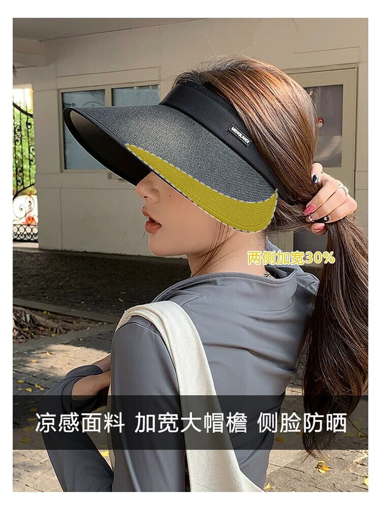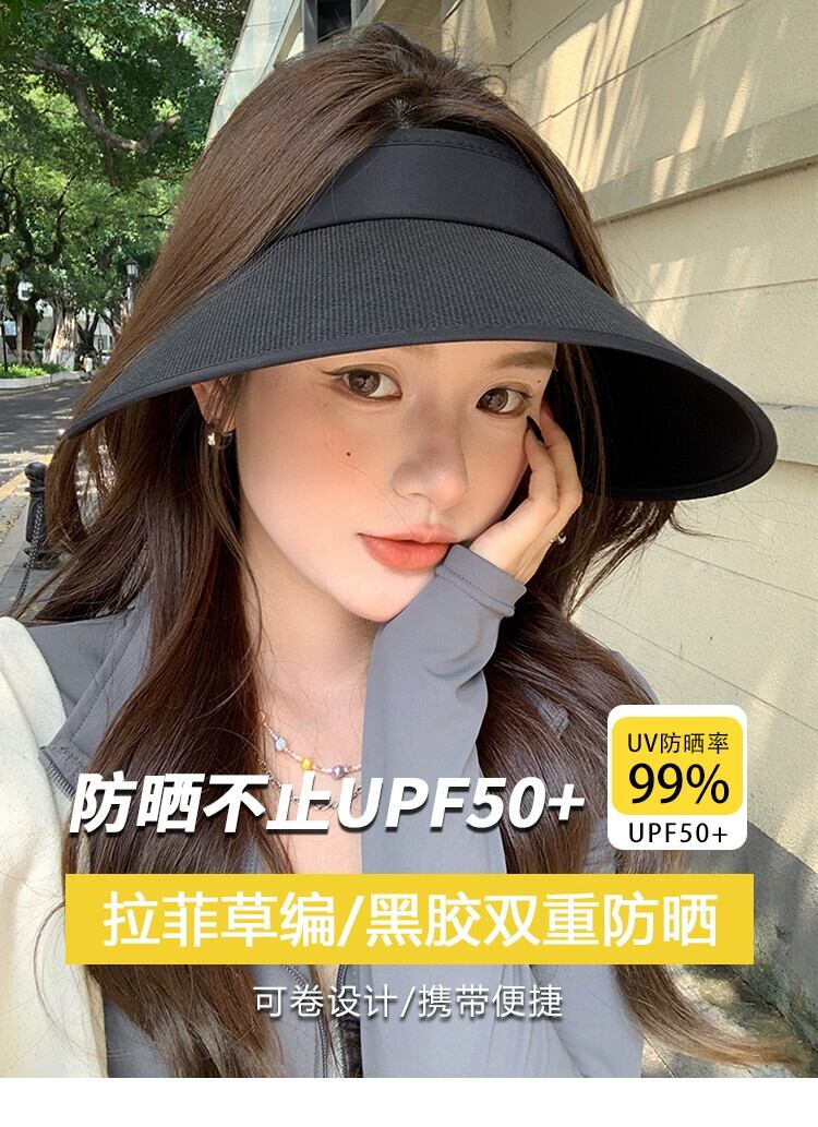 UPF50 + 黒接着剤サンハット女性の日よけ空のシルクハット夏 2023 新しい大きなつば抗紫外線日よけ帽子 ブラック サマー 夏物 15dd57837836159