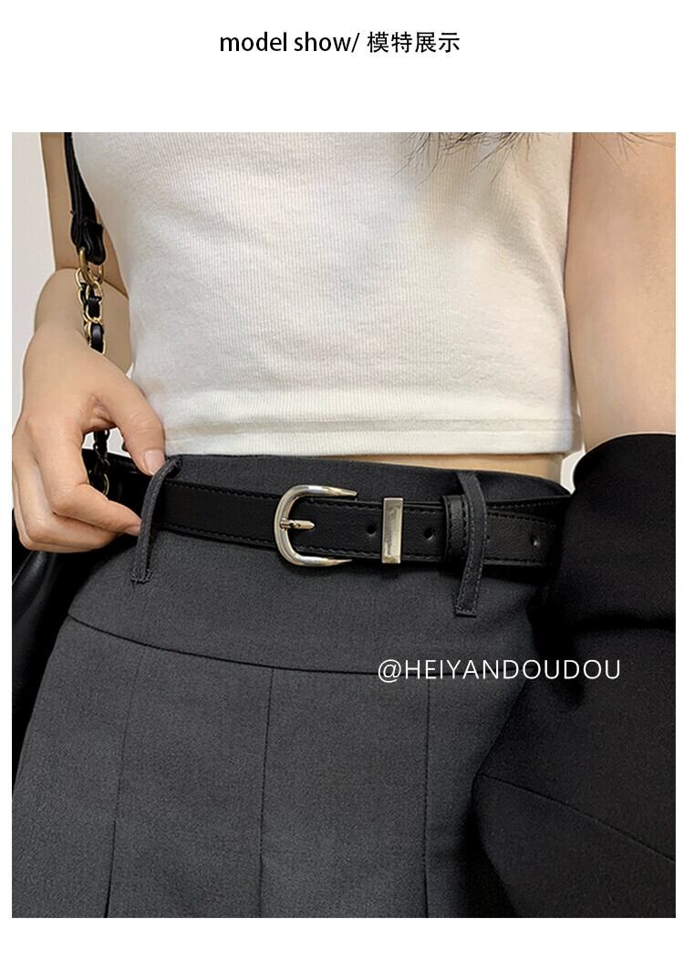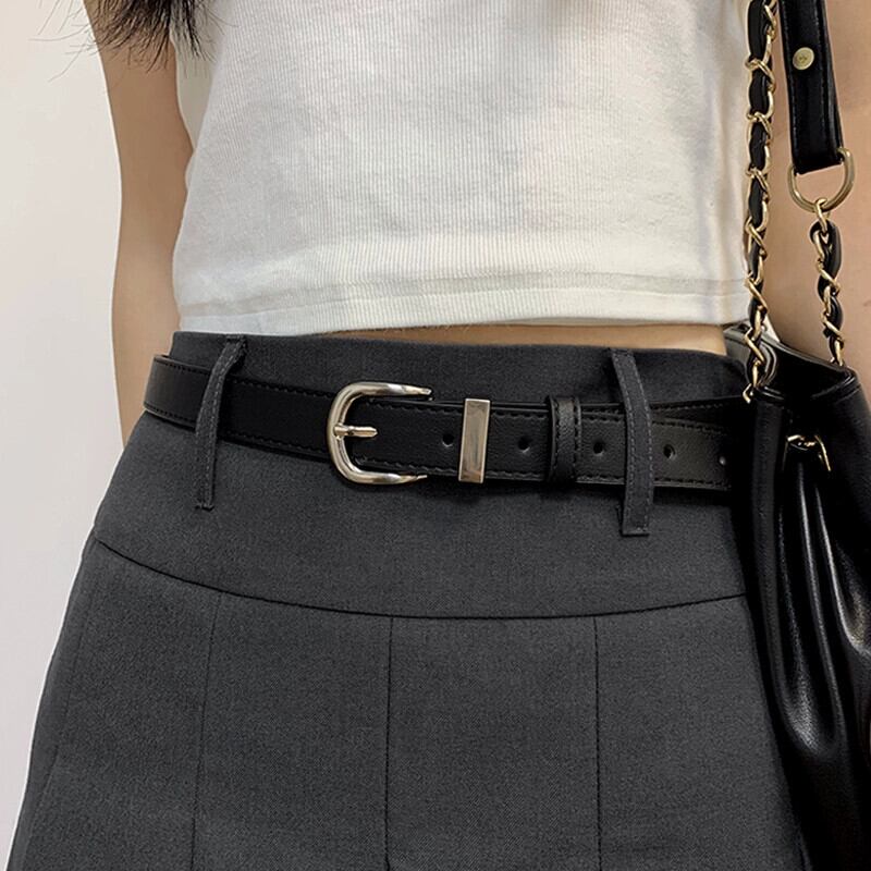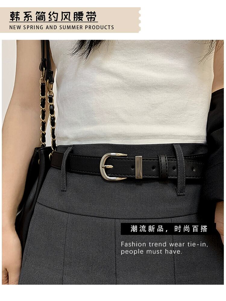 ベルト レディース サマー ブラック ジーンズ アメリカン レトロ シルバー バックル 装飾 シンプル オールマッチ 新しいベルト レディース 夏物 ハーネス 銀 15dd21462287757