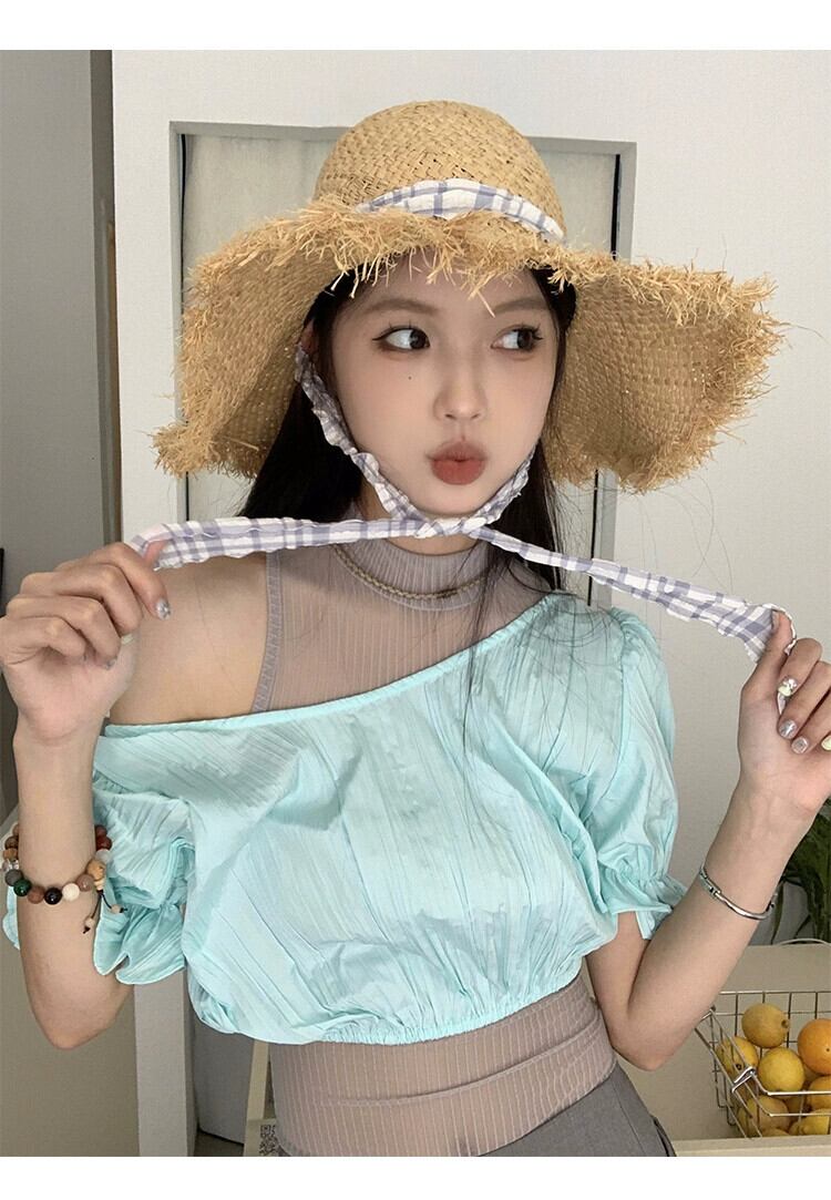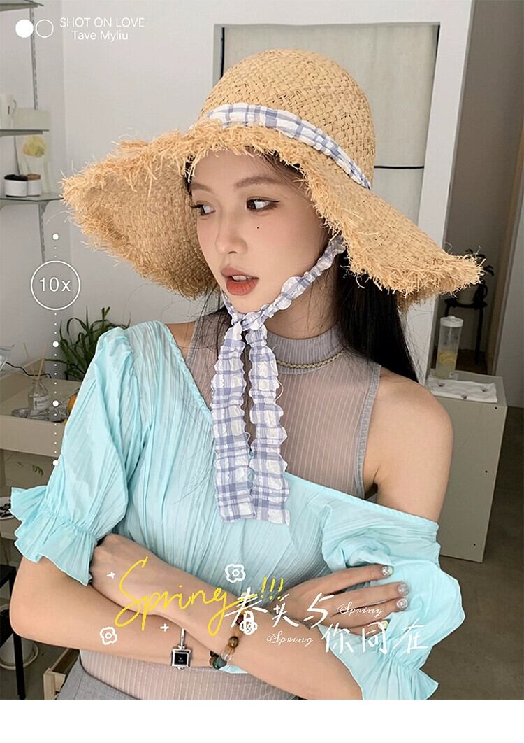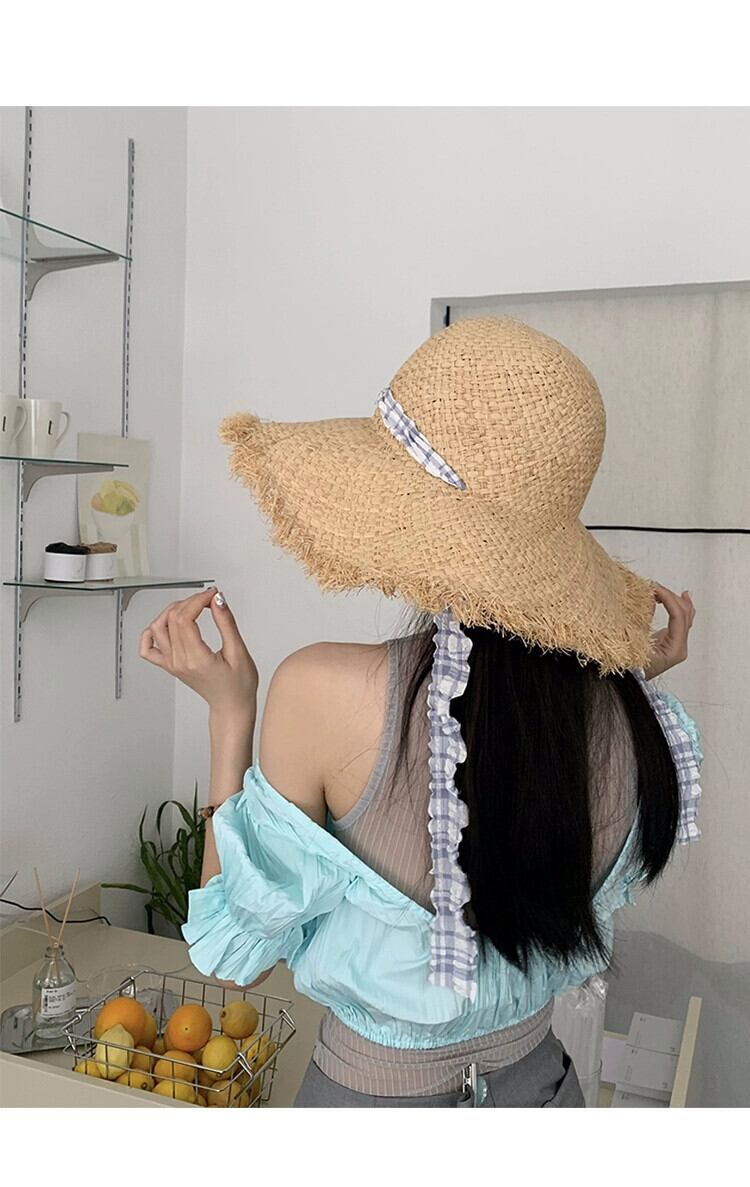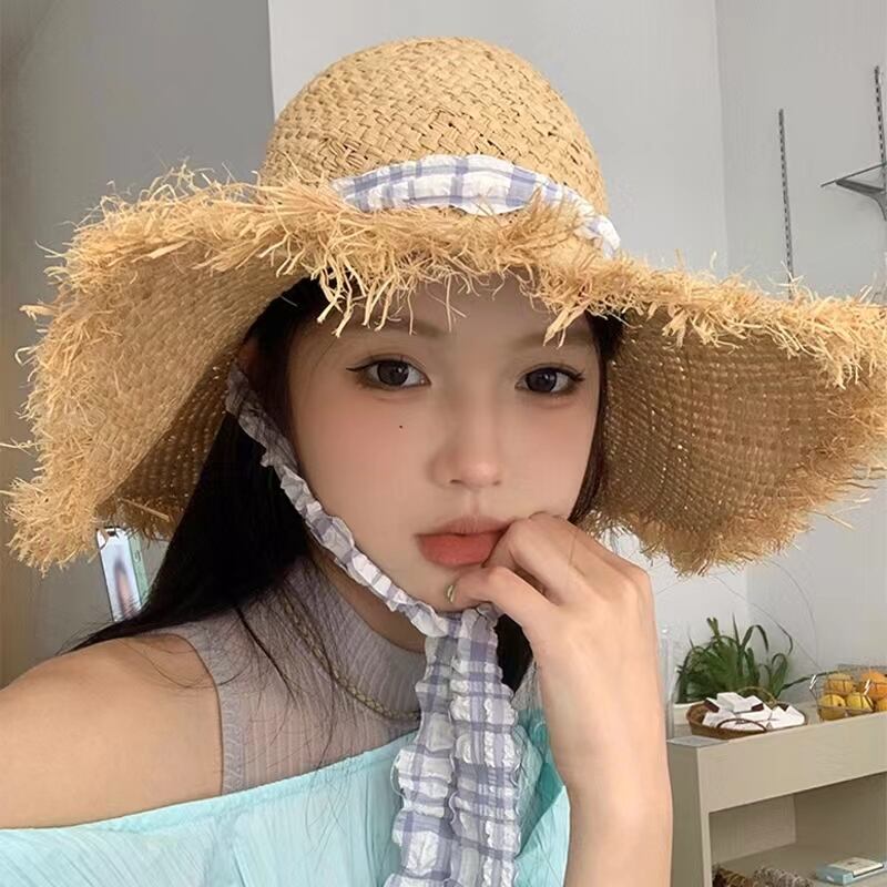 サンハット織り大きなつばラフィア麦わら帽子ショーフェイス小さな夏バージョンのビーチサンシェードビーチハットサンハット サマー 夏物 15dd10629225182