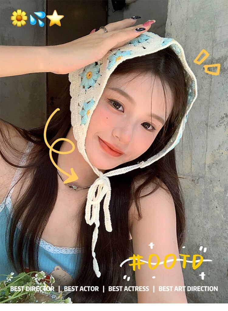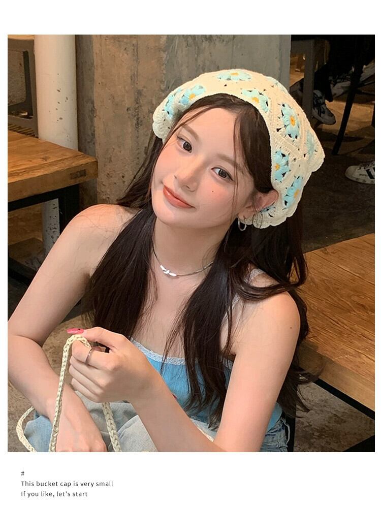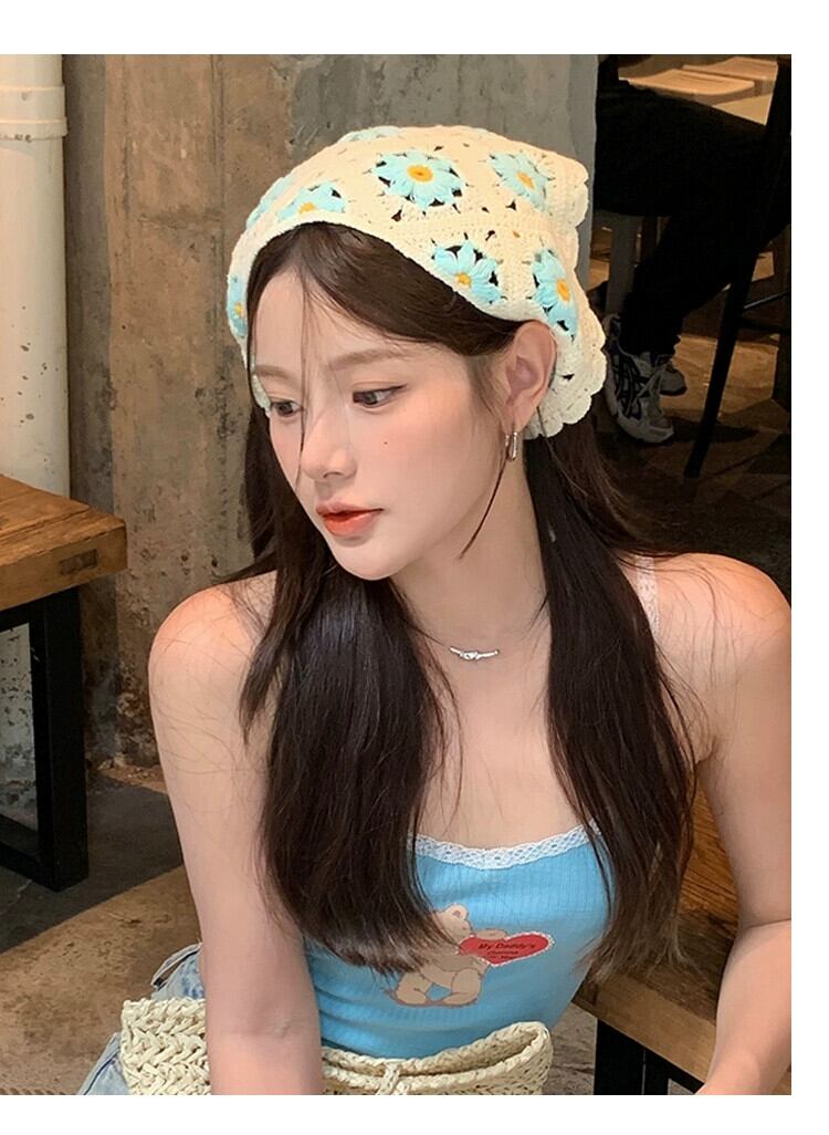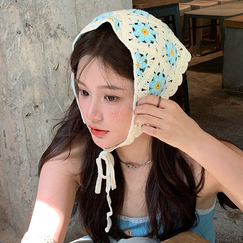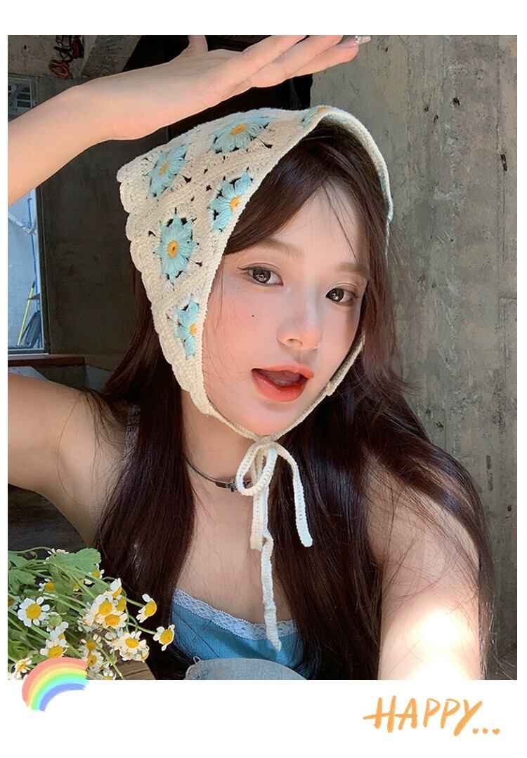 インス甘くてかわいいかぎ針編み手編みの小さなデイジー三角スカーフ女性の春と秋のお出かけアートヘッドバンドヘッドバンド 大人ガーリー スウィート キュート カジュアル スプリング 春物 オータム 秋物 ヘアバンド ヘアアクセサリー 15dd53907474926
