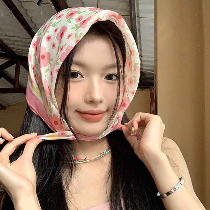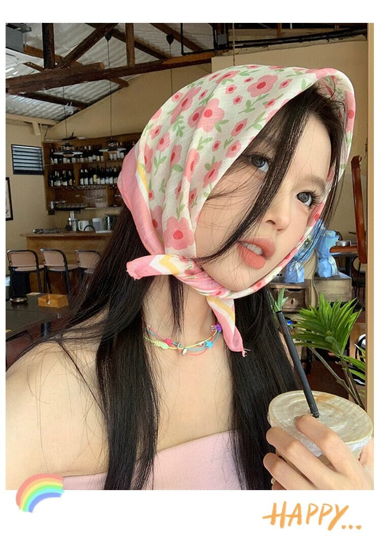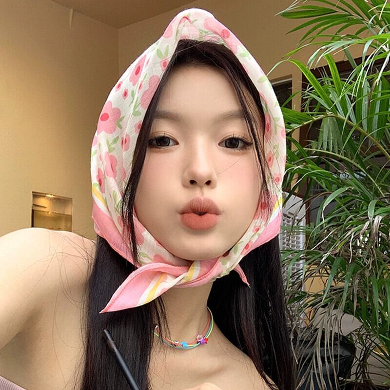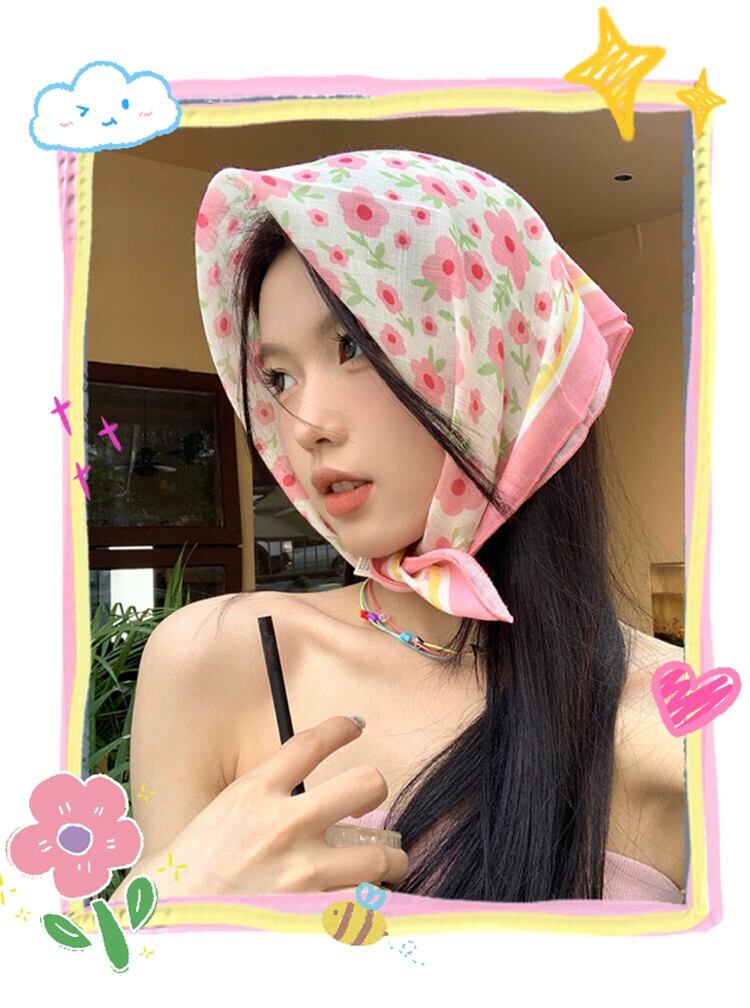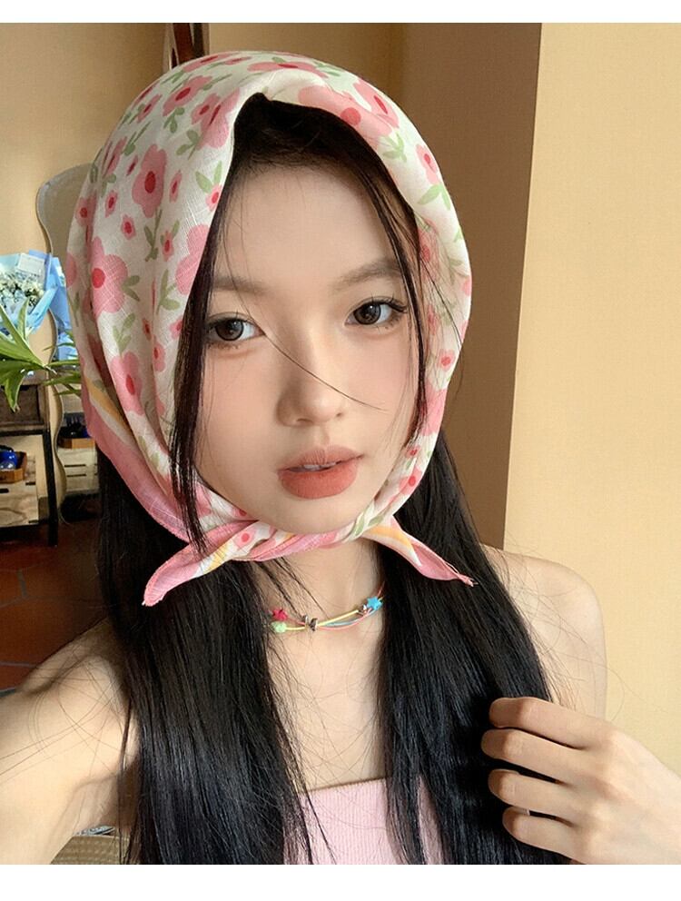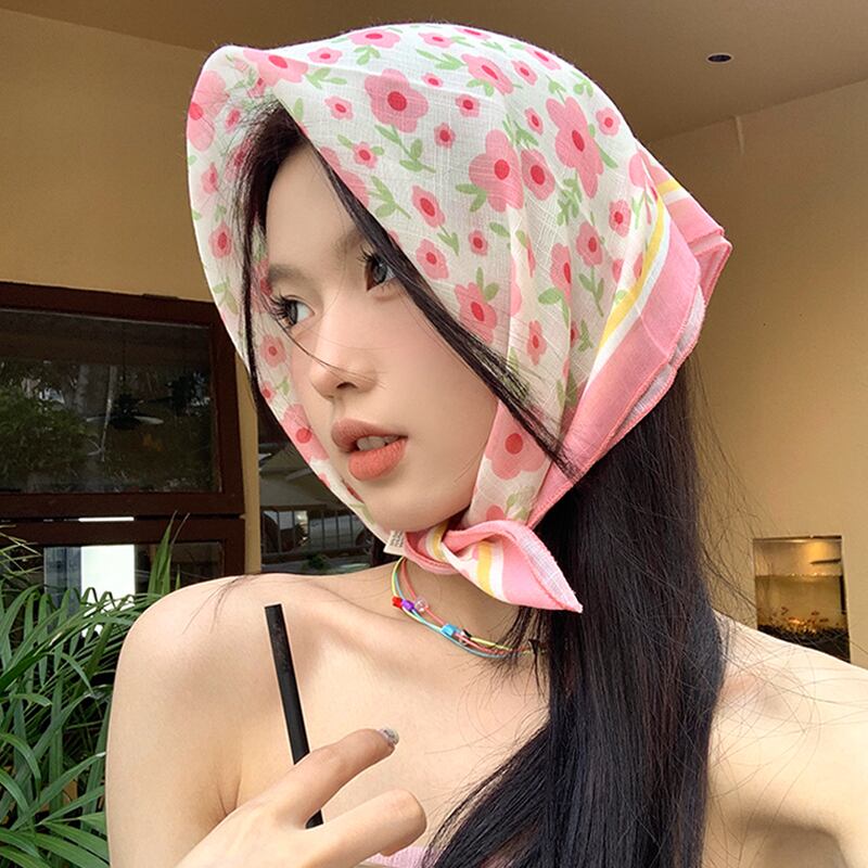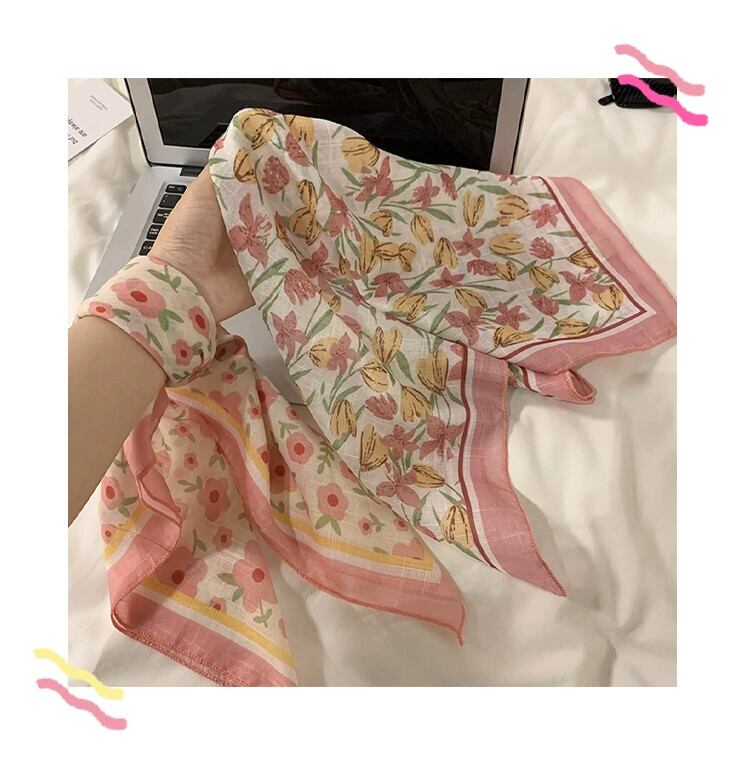 コットンとリネンの小さな正方形のスカーフ女性甘くてかわいい装飾的な小さなシルクスカーフ夏のターバン女性の eign スタイルオールマッチ花柄小さなスカーフ 大人ガーリー スウィート キュート カジュアル サマー 夏物 スクウェア 15dd90359582831