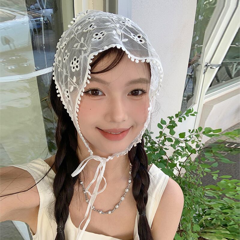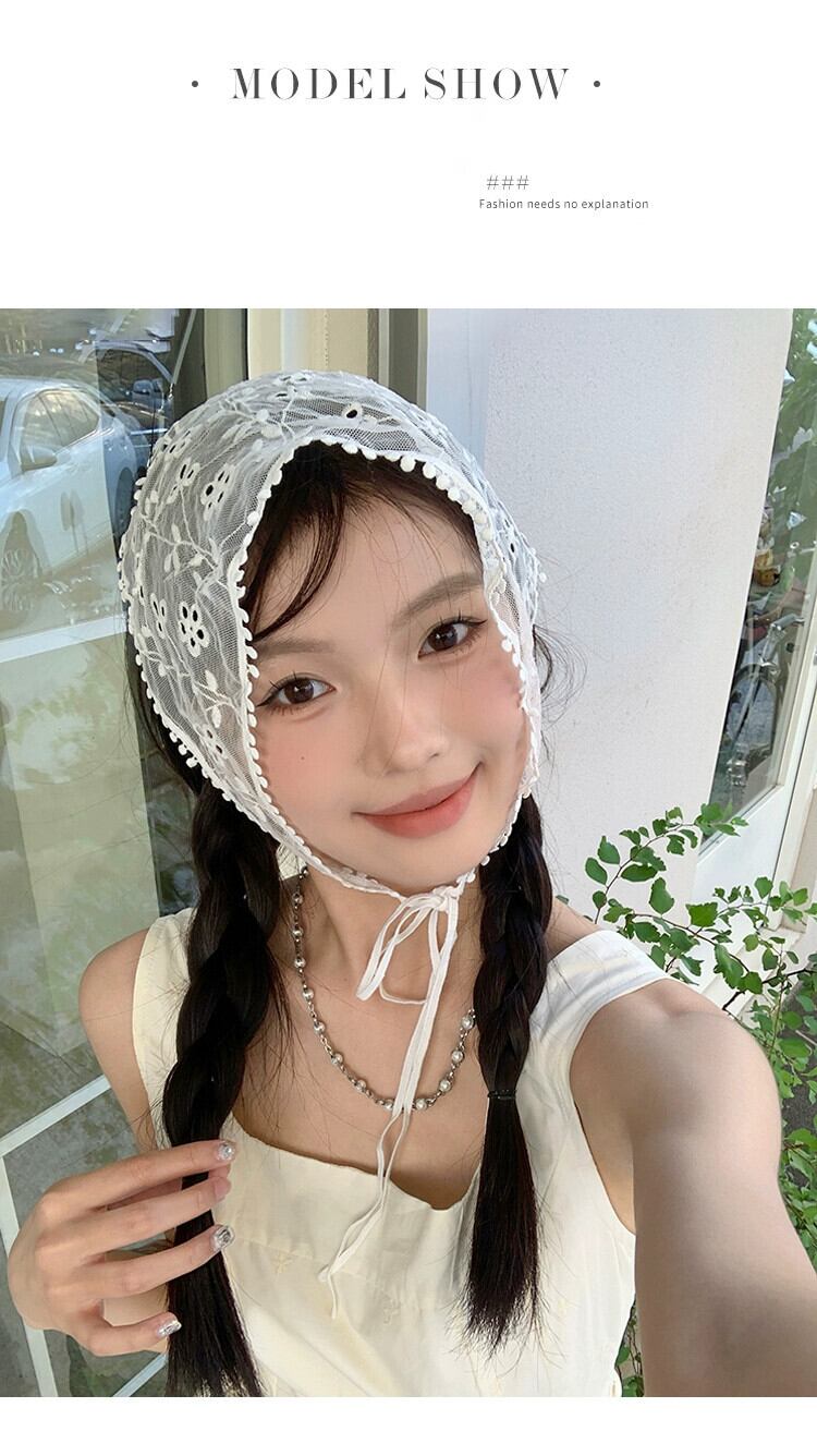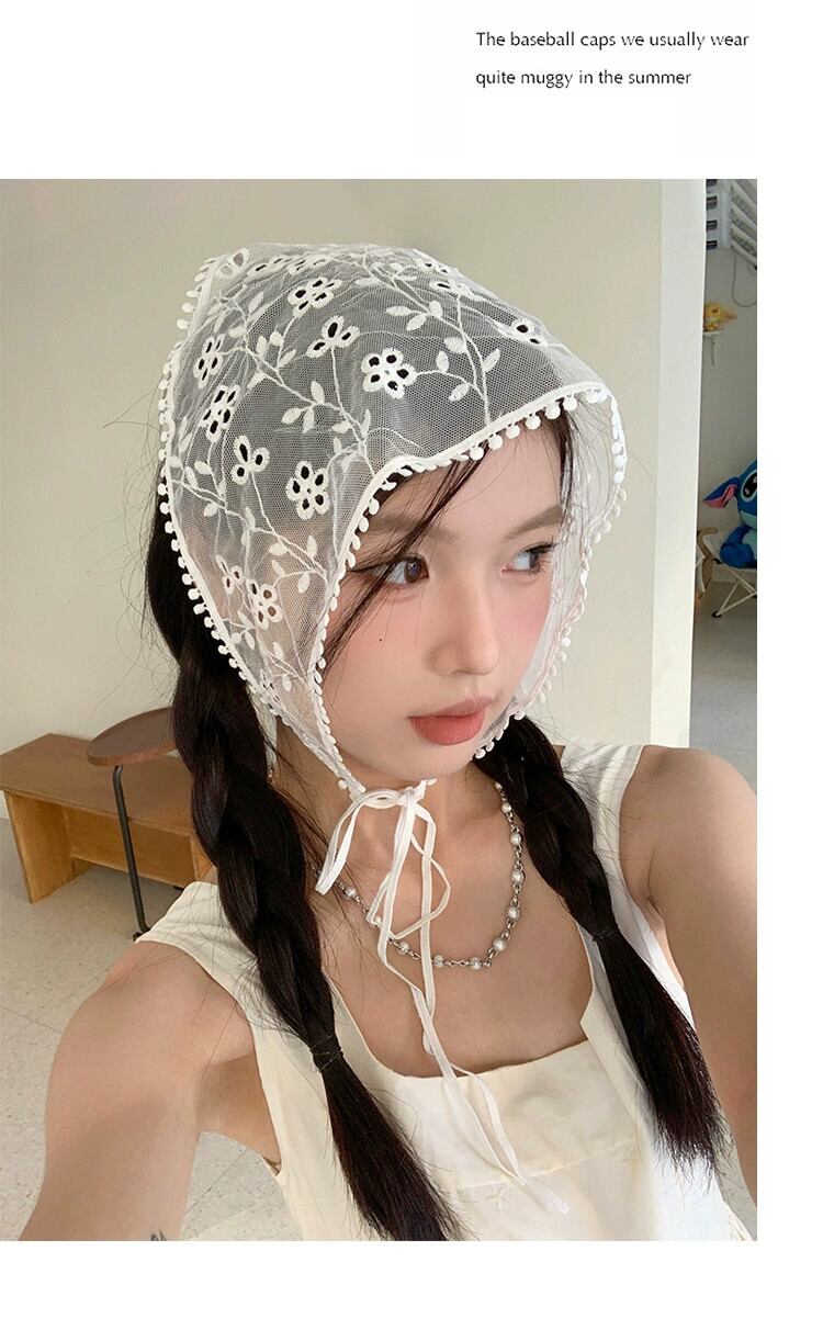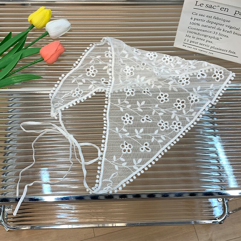 フレンチトライアングルスカーフホワイトレースレトロフラワーシルクスカーフ女性甘い縛らヘアストリーポpoヘッドスカーフネットレッド 大人ガーリー スウィート キュート カジュアル フラワーデザイン 15dd86335527226