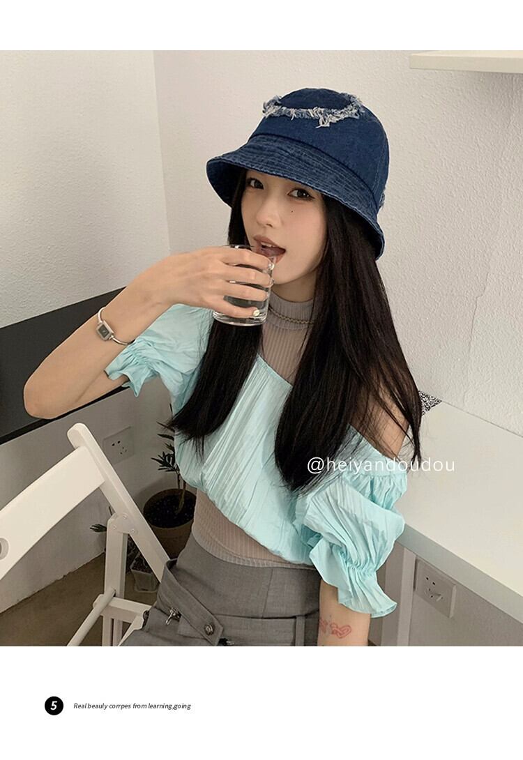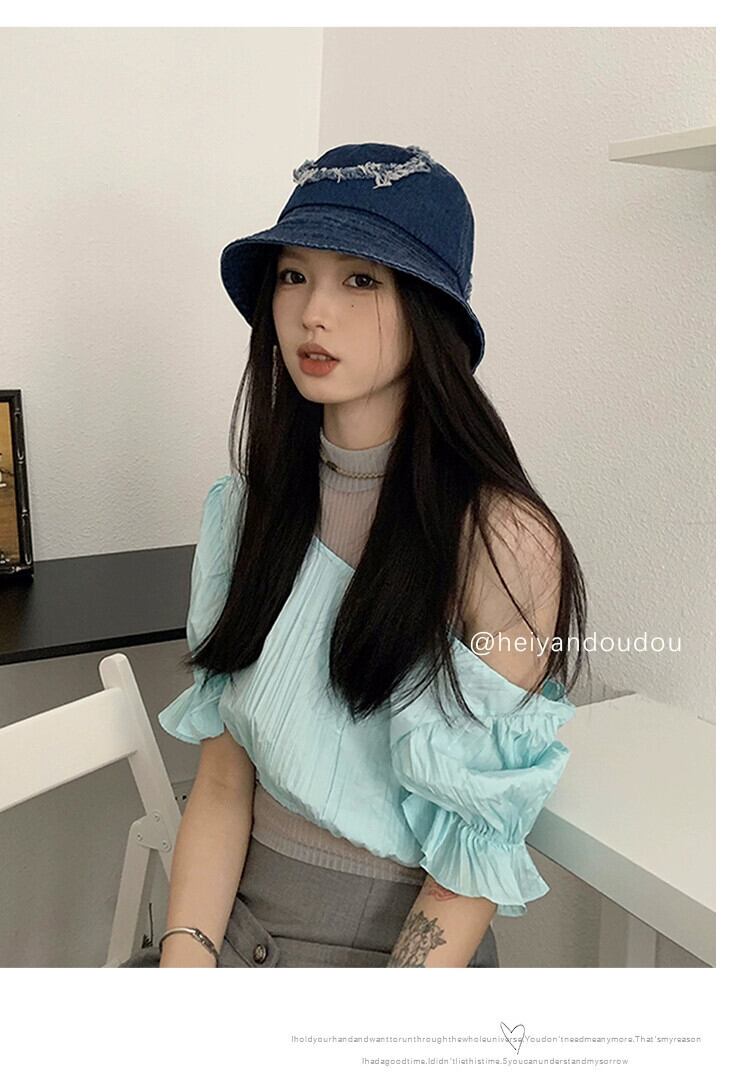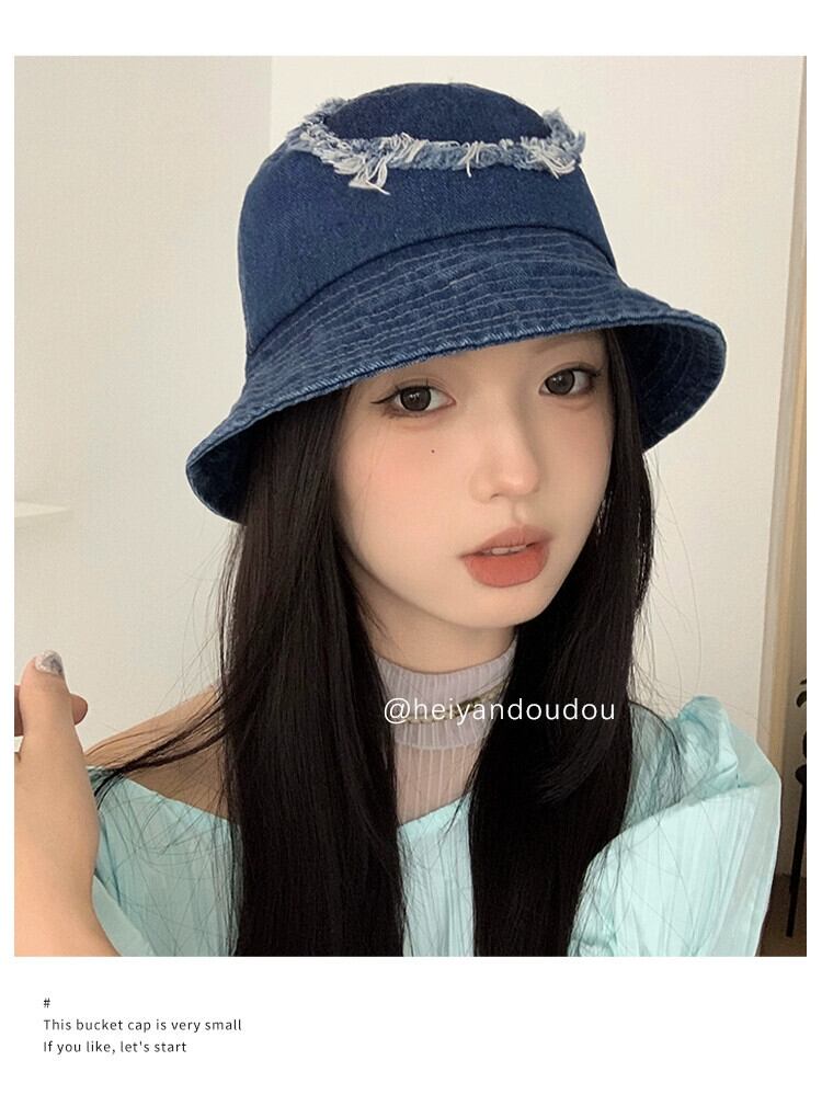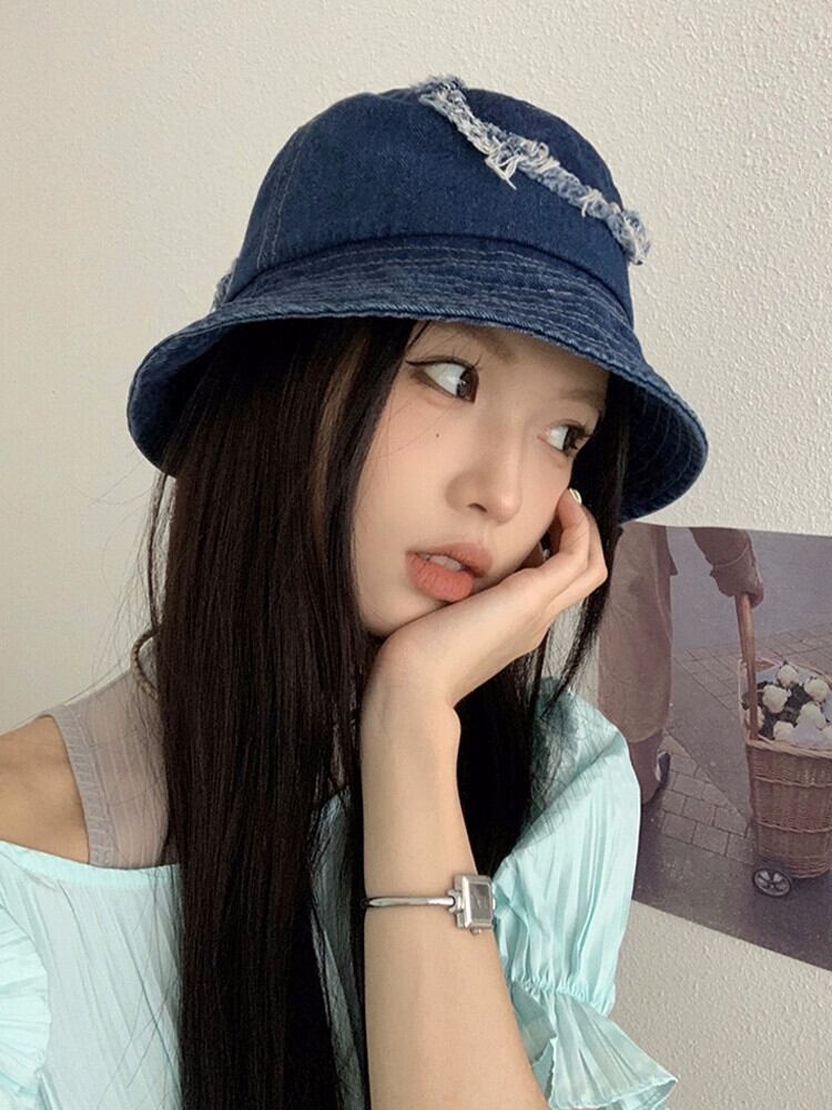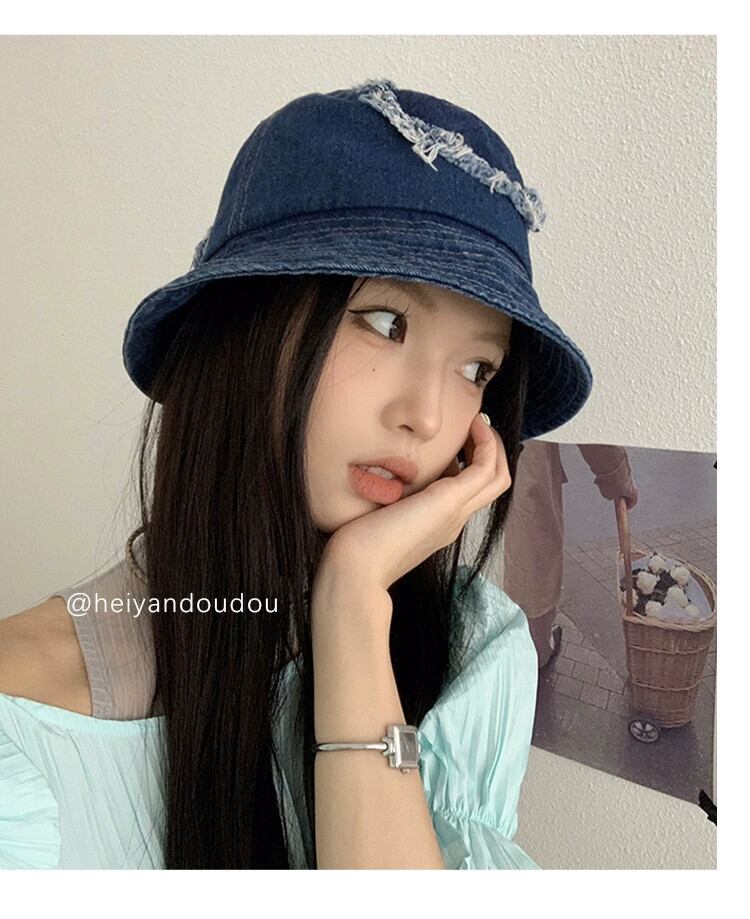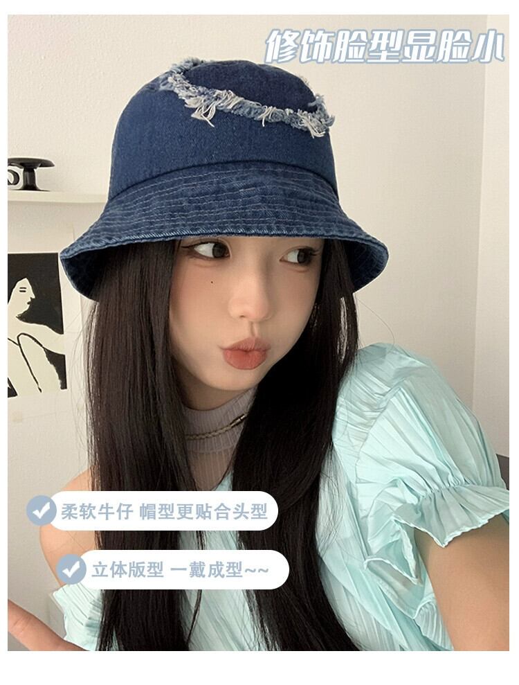 レトロな昔ながらのデニムフィッシャーマンハットレディース夏薄肉ビッグヘッド盆地帽子高級感細身無地バケットハット サマー 夏物 15dd36082302719