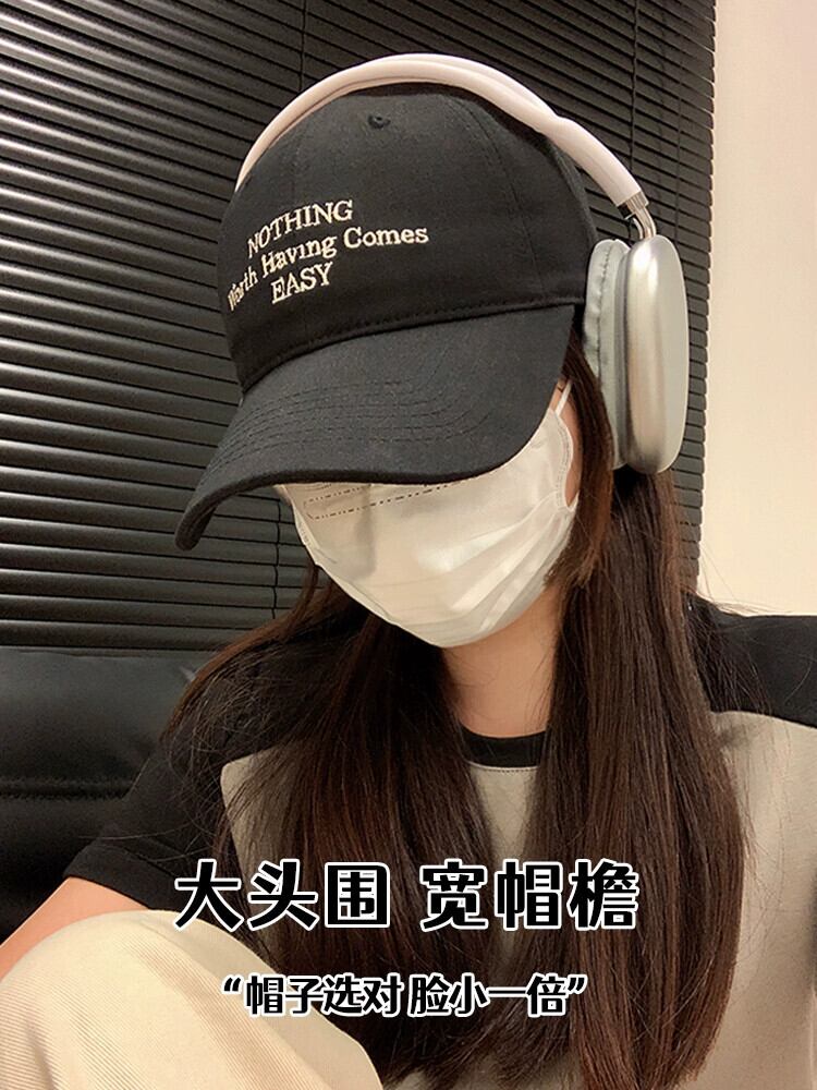 レトロ小文字野球帽女性の春夏のトレンディなブランドソフトトップ大きな頭囲ディープトップ広いつばひだ付き帽子 スプリング 春物 サマー 夏物 15dd35445723989