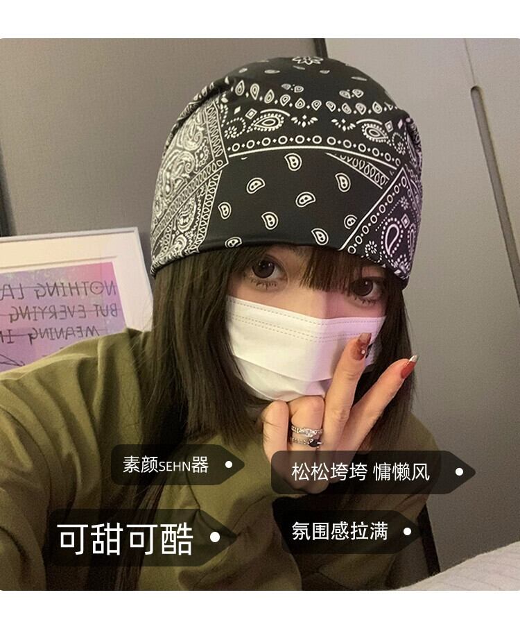 ese ヒープ帽子女性の新しいルーズビッグ頭囲帽子ショーフェイス小さな包頭帽子黒カジュアルコールド帽子男性 ブラック 15dd7666688591