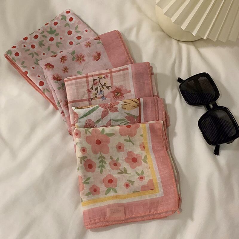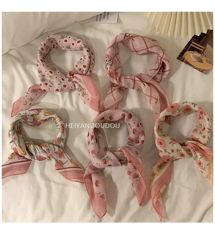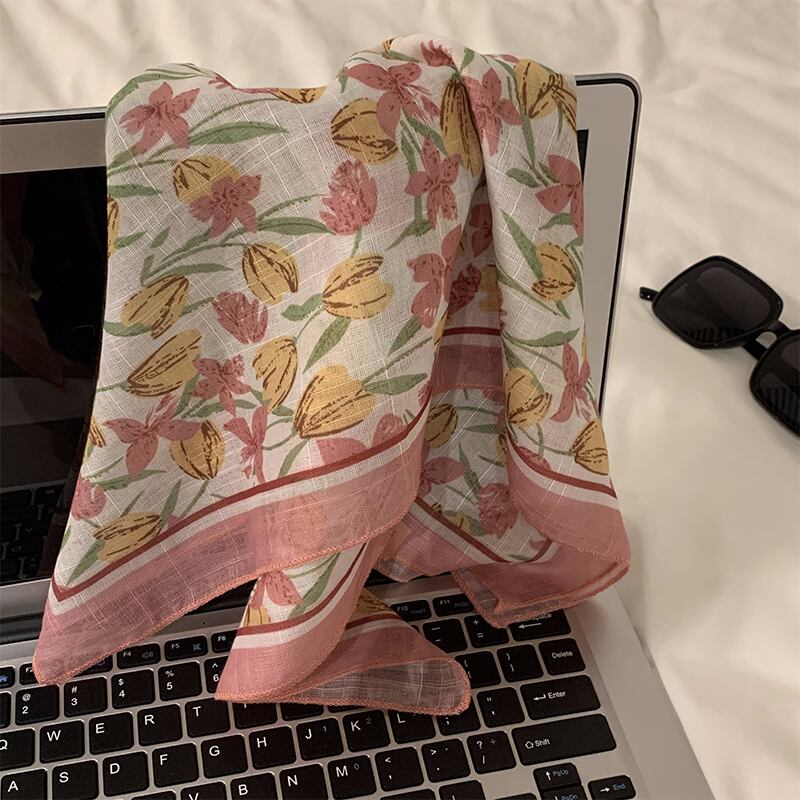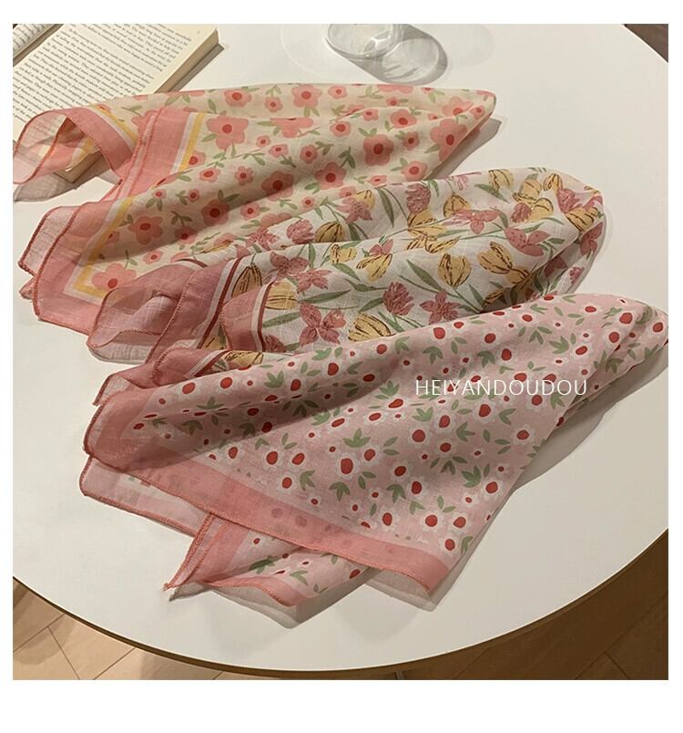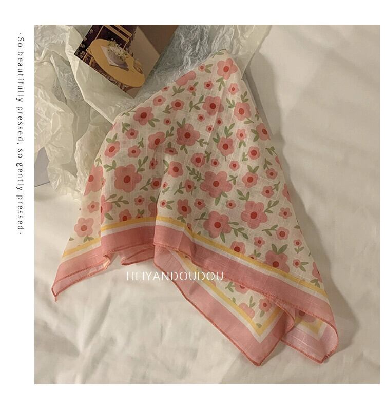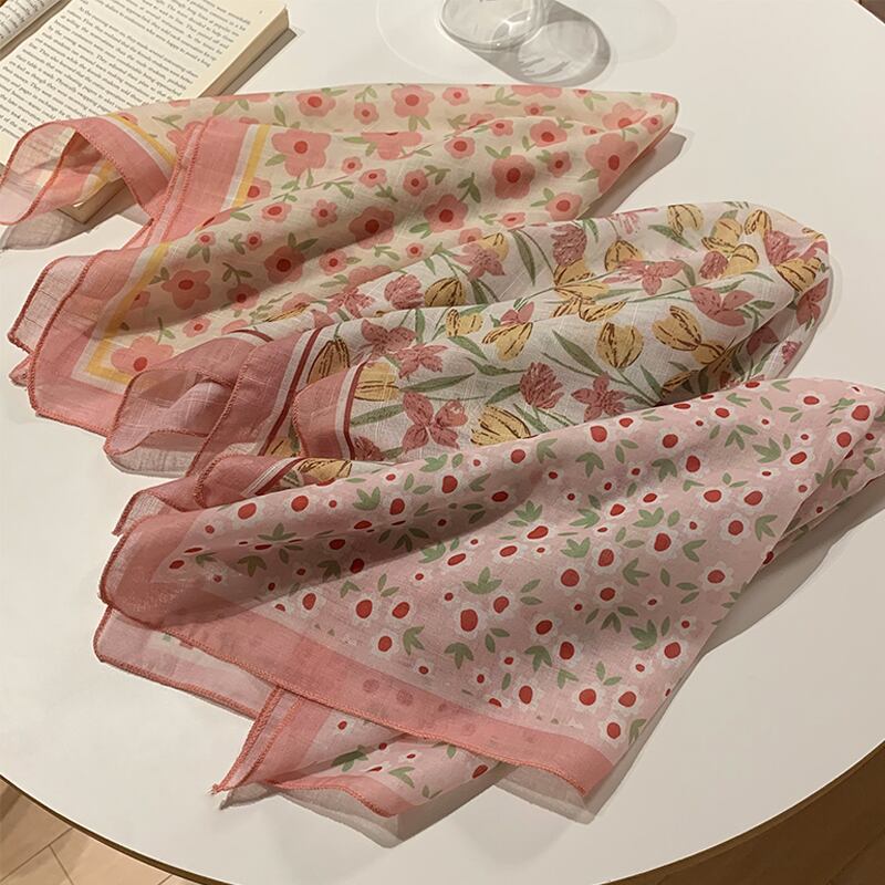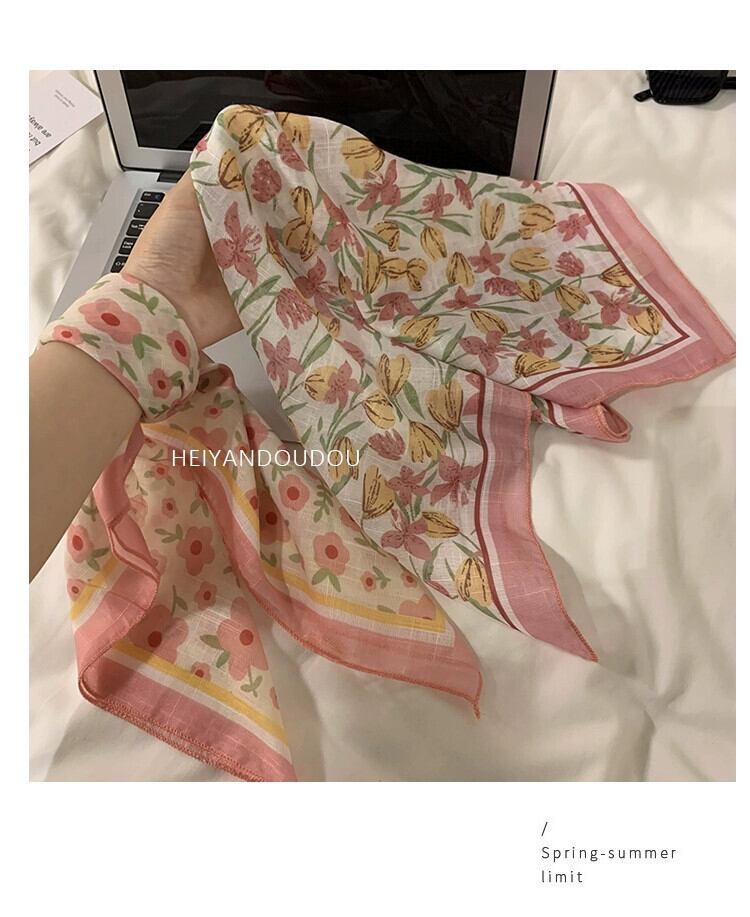 夏の綿とリネン通気性シルクスカーフ女性のオールマッチ小さな正方形スカーフネックガード装飾スカーフファッションアインスタイルヘッドスカーフ包頭 コットン サマー 夏物 スクウェア 15dd22339957230