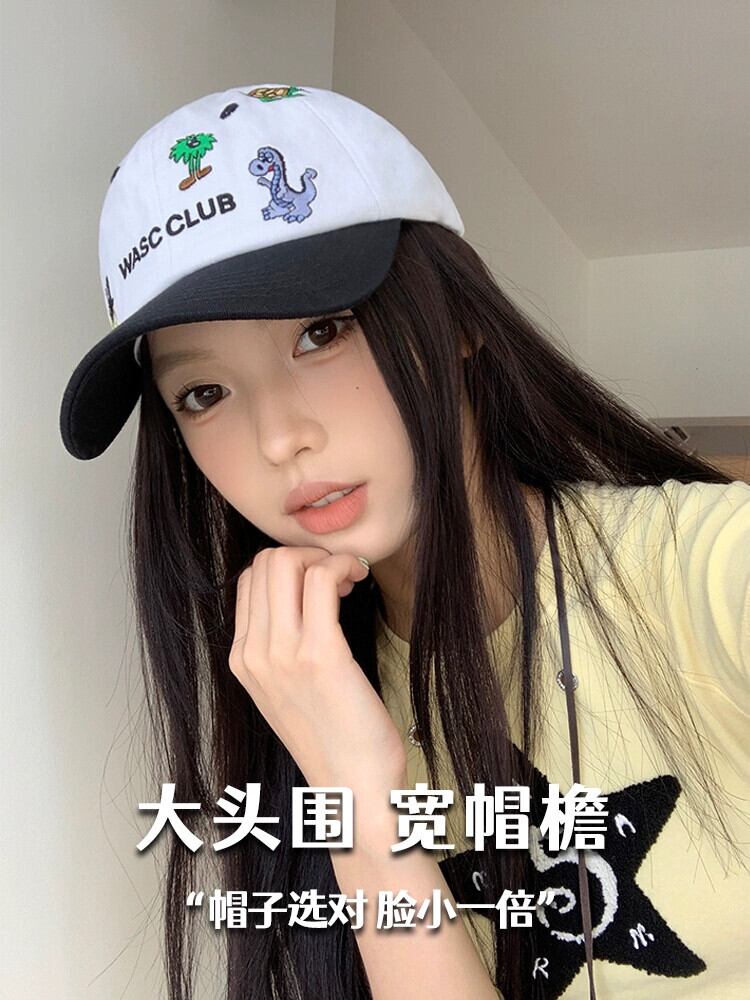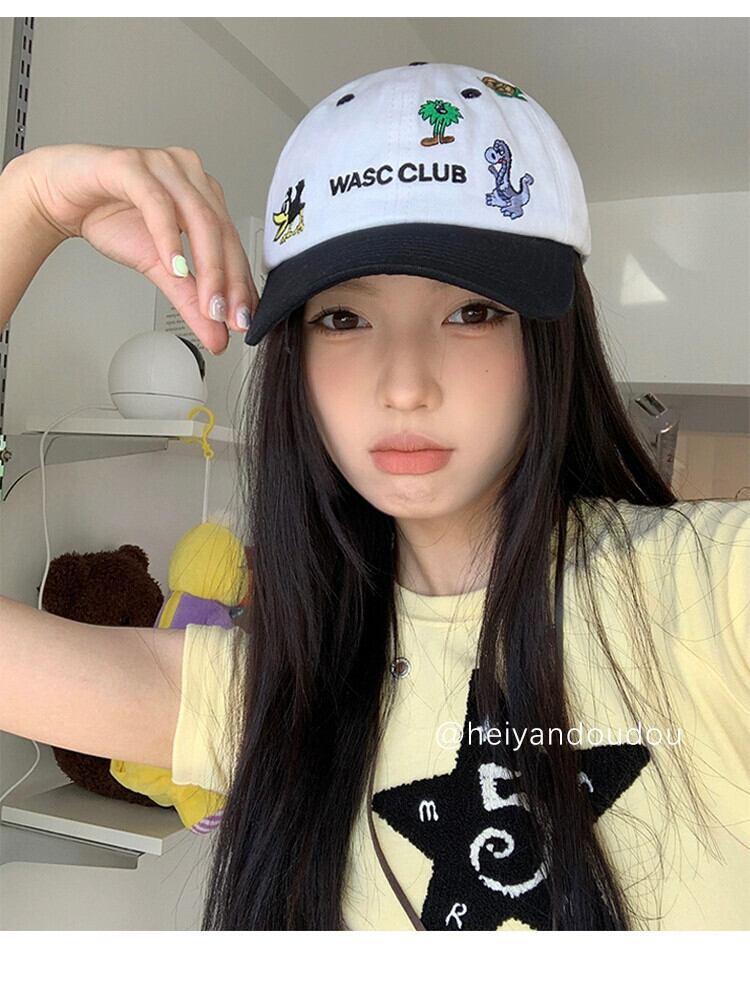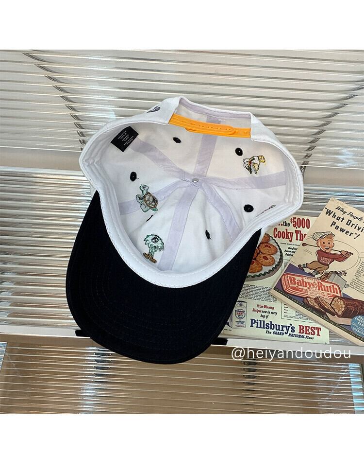 feve 同じスタイルの黒と白のカラースペル古いソフトトップ野球帽楽しい動物刺繍カジュアルオールマッチキャップ ホワイト ブラック 15dd52447881026