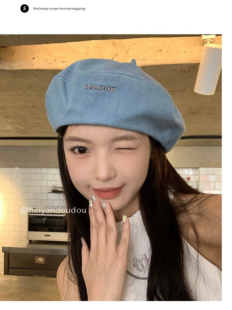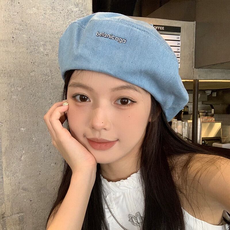 レトロ大きな頭囲デニムベレー帽女性の夏のスタイル 2023 新しい薄セクション ese スタイルの顔小さな帽子画家帽子潮 サマー 夏物 ベレット ヘアアクセサリー 15dd38619442098