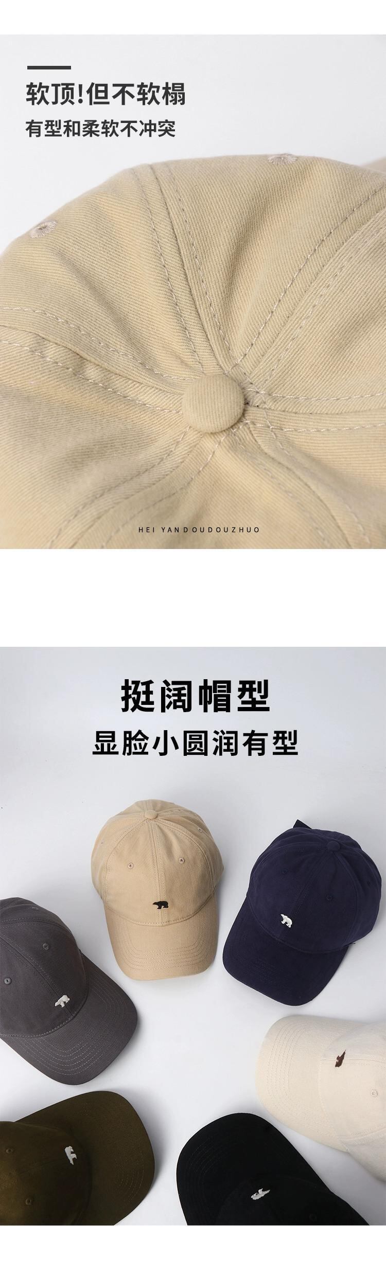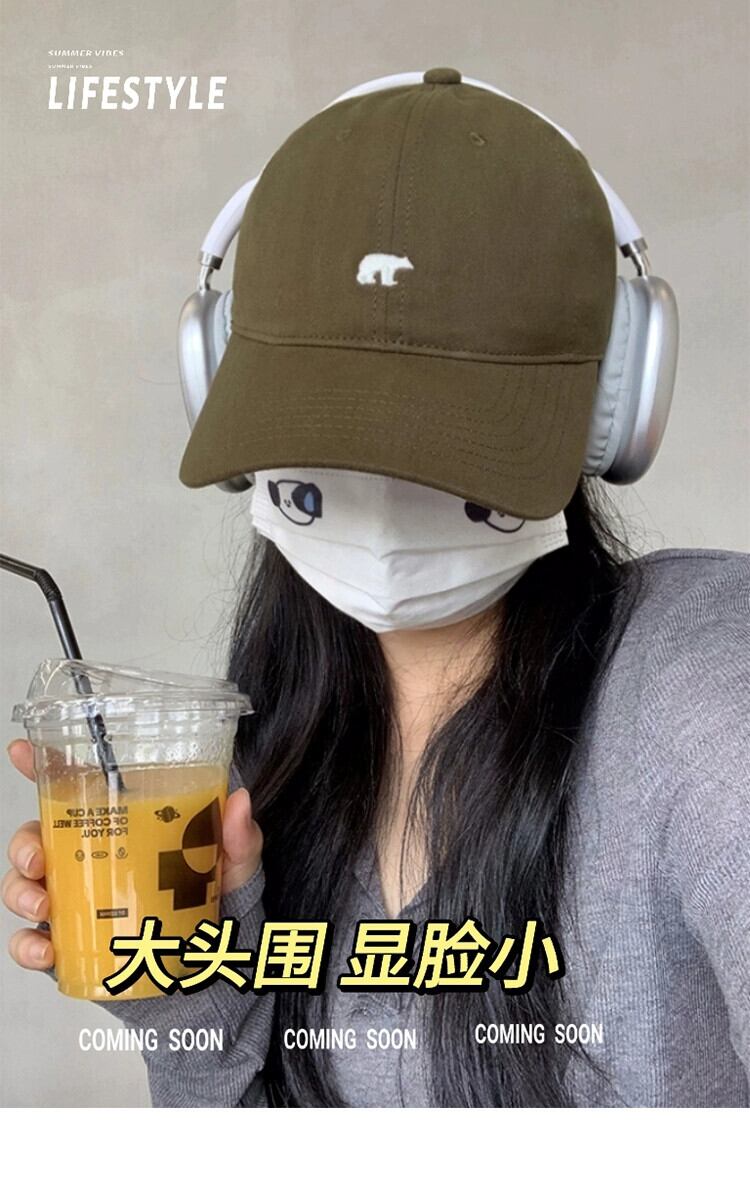 2023 新アメリカングレー野球帽女性のソフトトップシロクマキャップ男性の顔小さな帽子大きな頭囲 15dd12233397340