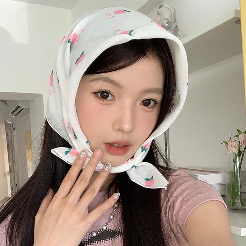 2023 新花柄ヘアネクタイスカーフ外出オールマッチハイエンドセンスショール牧歌的な花カチューシャシルクスカーフ女性 ヘアバンド ヘアアクセサリー フラワーデザイン 15dd49128216198