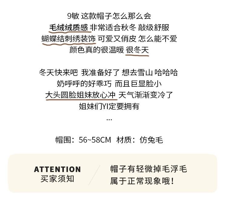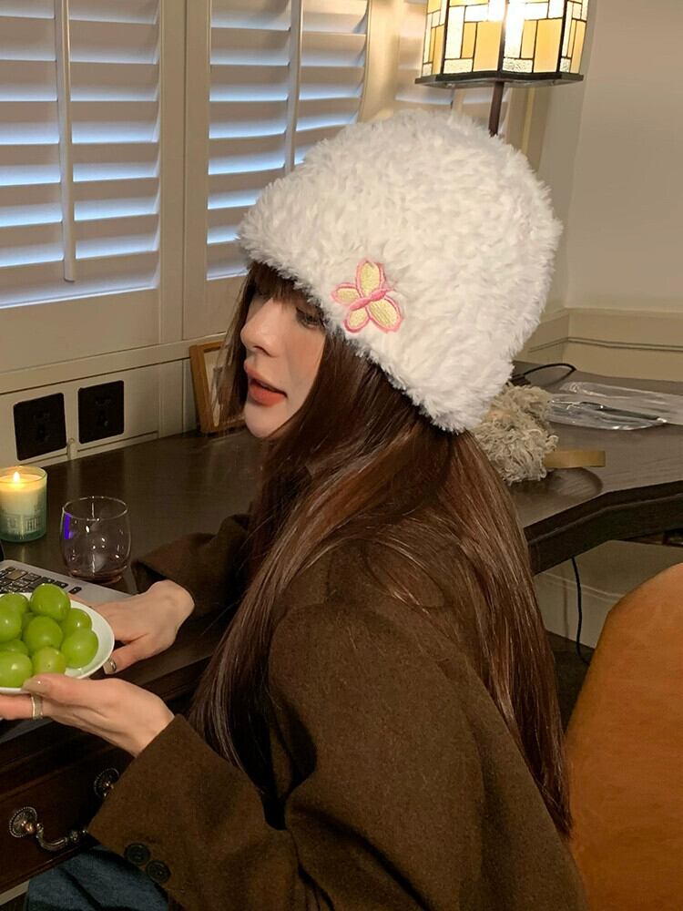 ぬいぐるみ帽子女性の秋と冬の蝶刺繍ニッチ大きな頭囲ウール厚い耳保護暖かいニット包頭帽子 オータム 秋物 ウィンター 冬物 15dd11175404995
