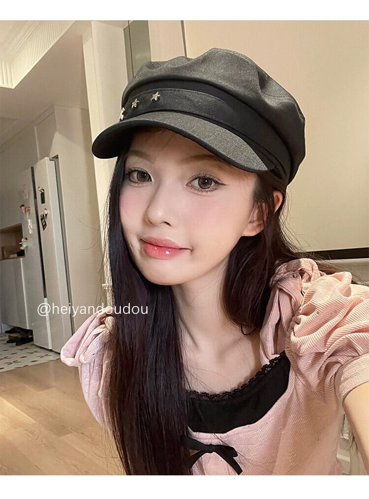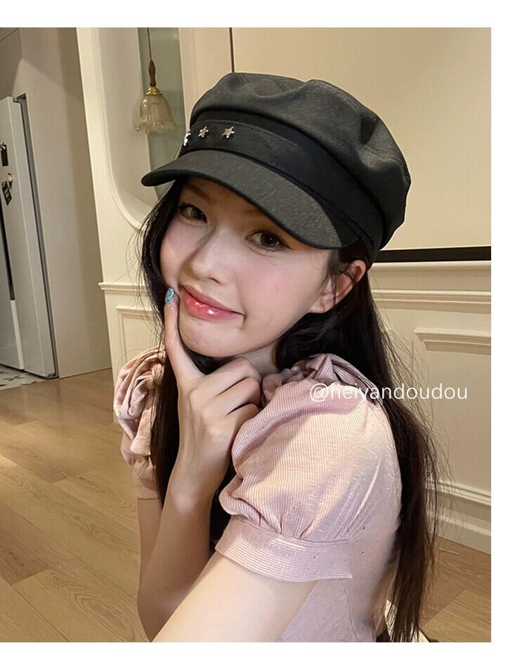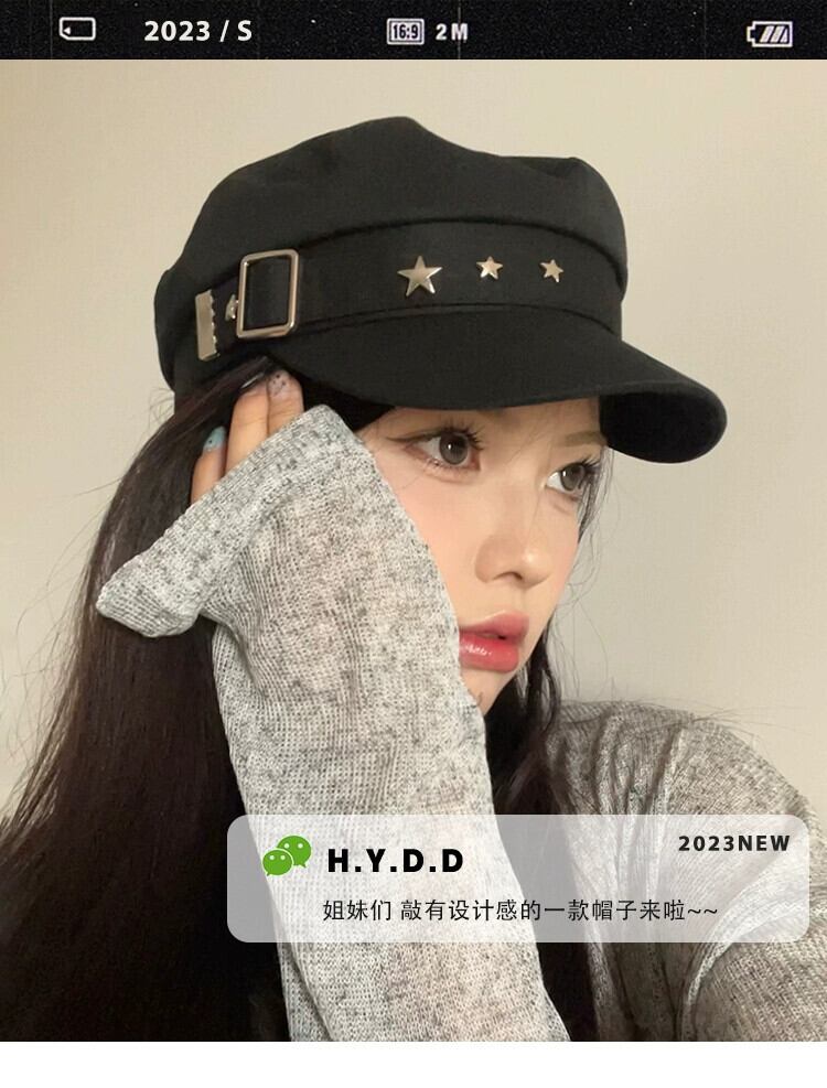 ピークキャップ女性 2023 新しいベレー帽スターネイビー帽子 ese スタイル y2k 顔小さな八角形ペインター帽子 ベレット ヘアアクセサリー 15dd87098055329