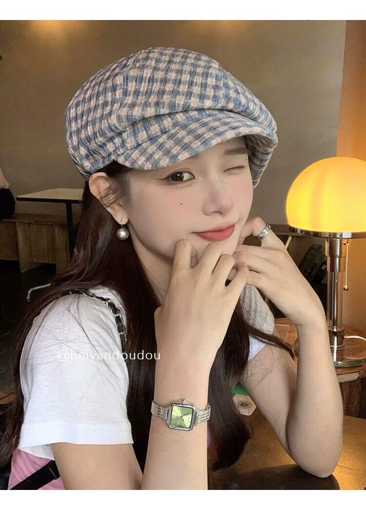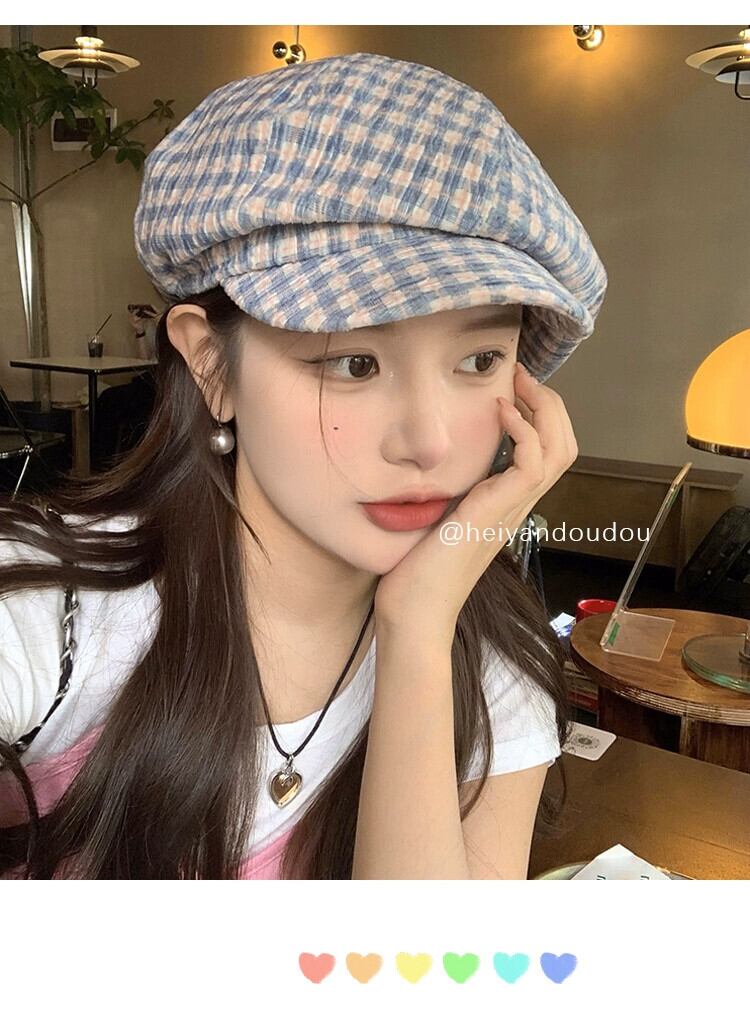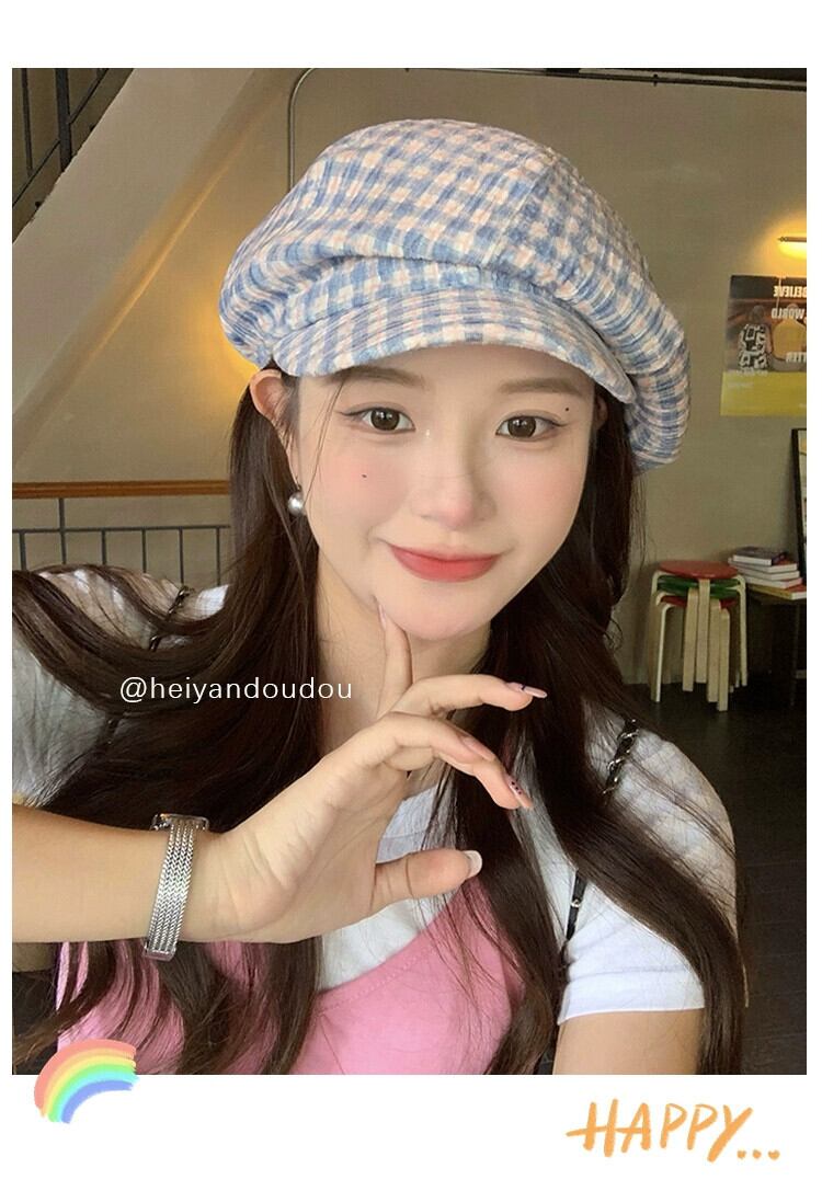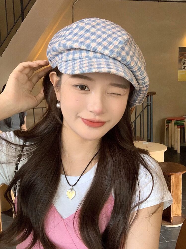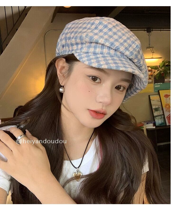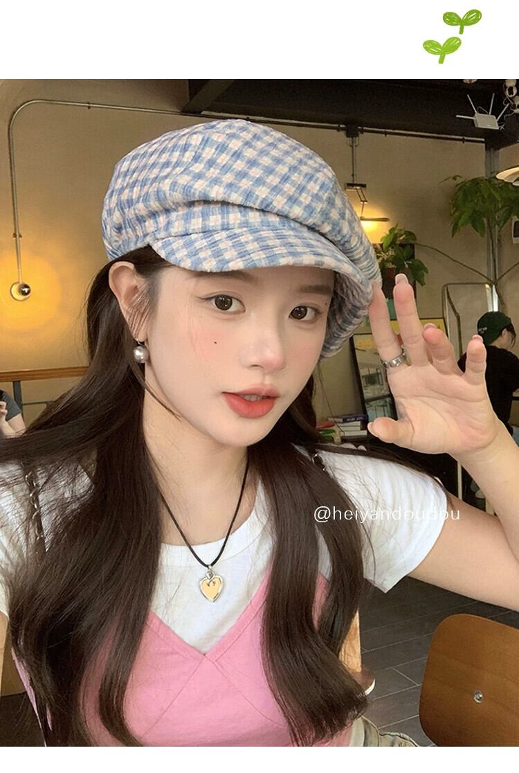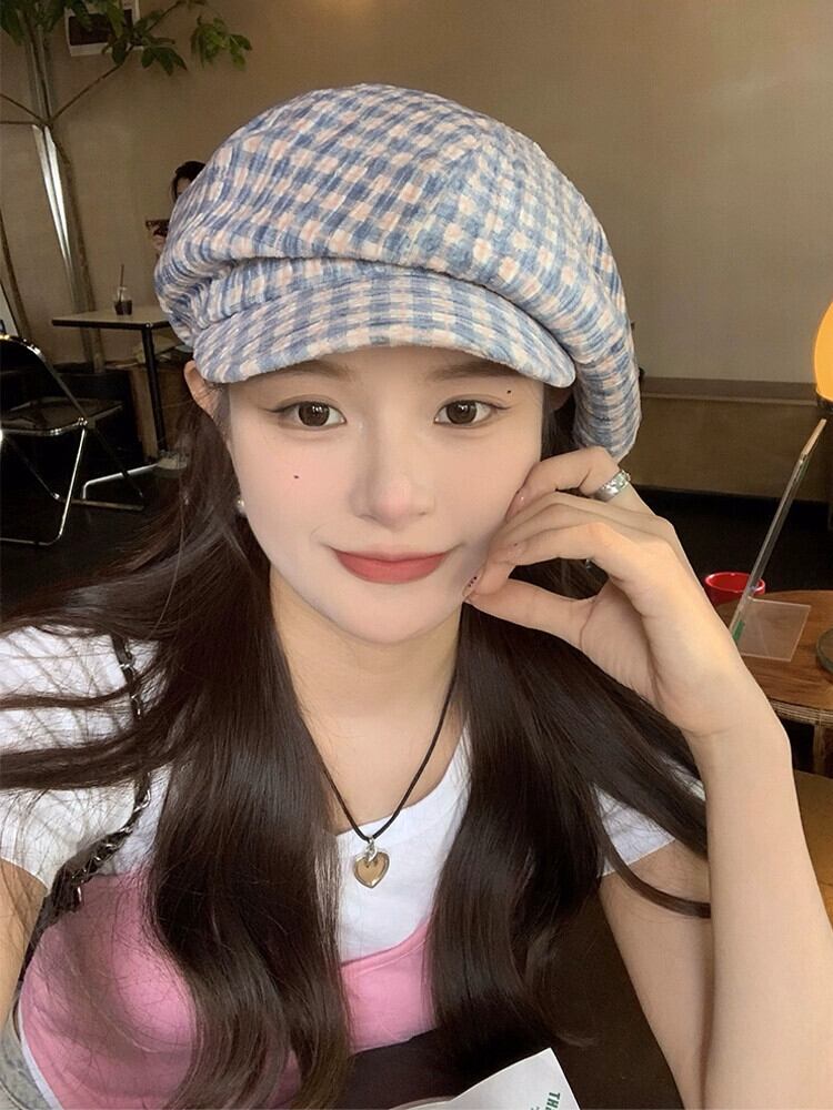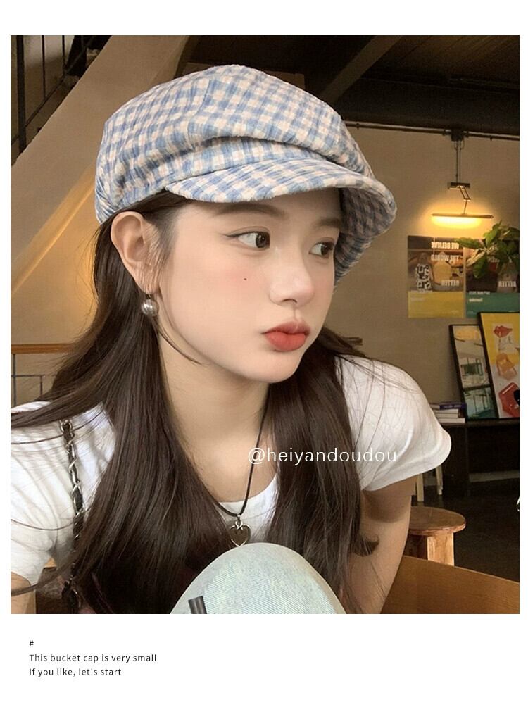 顔付きの大きいバージョン、小さなアヒルの舌ベレー帽、雲絵師の帽子、レトロな多用途文学チェック柄キャスケット帽子のバージョン ベレット ヘアアクセサリー 15dd33761301859